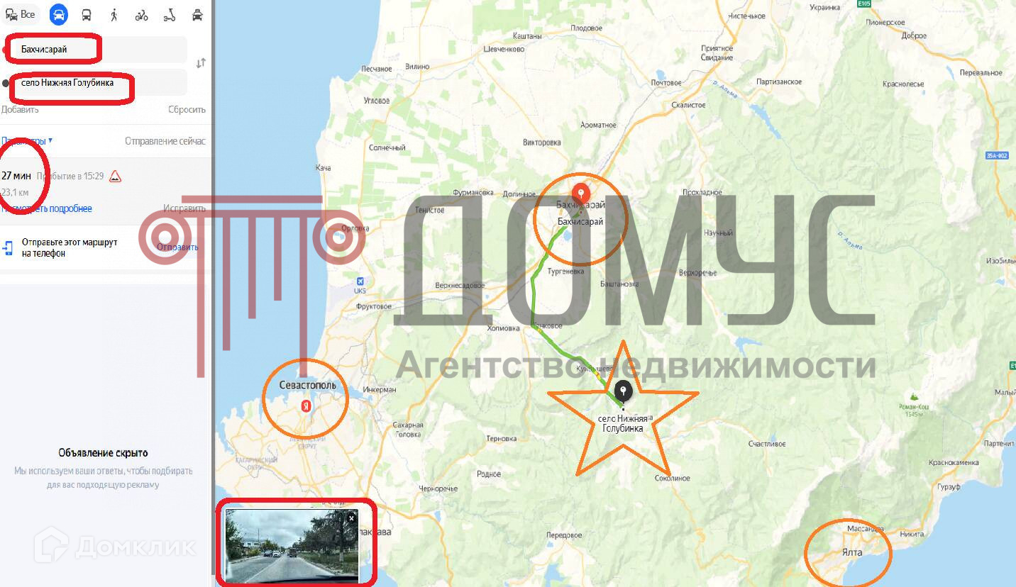 Арт. 51080890 Предлагается к продаже уникальный земельный участок ИЖС в Крымской Швейцарии в Нижней Голубинке по улице Заречная, д.26.