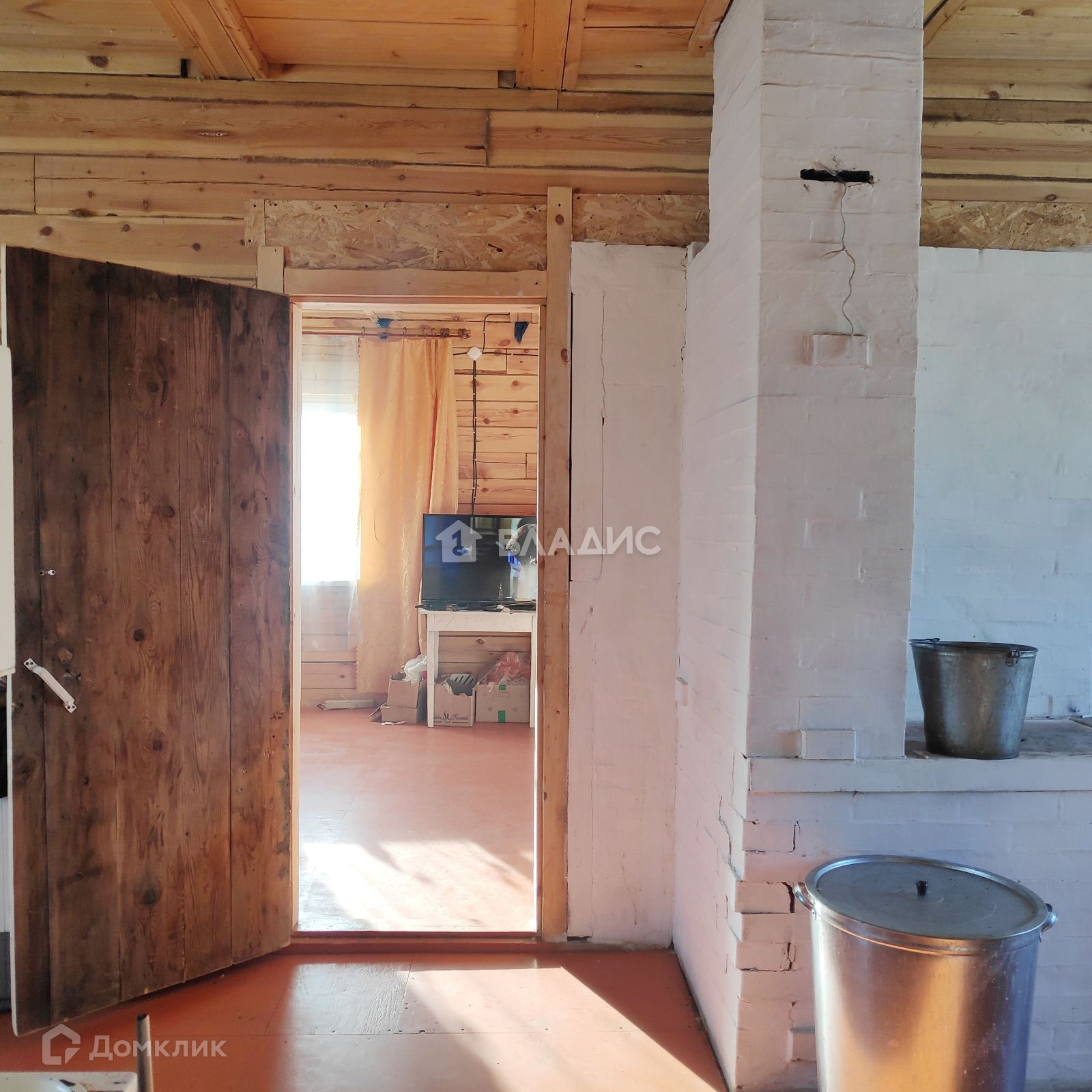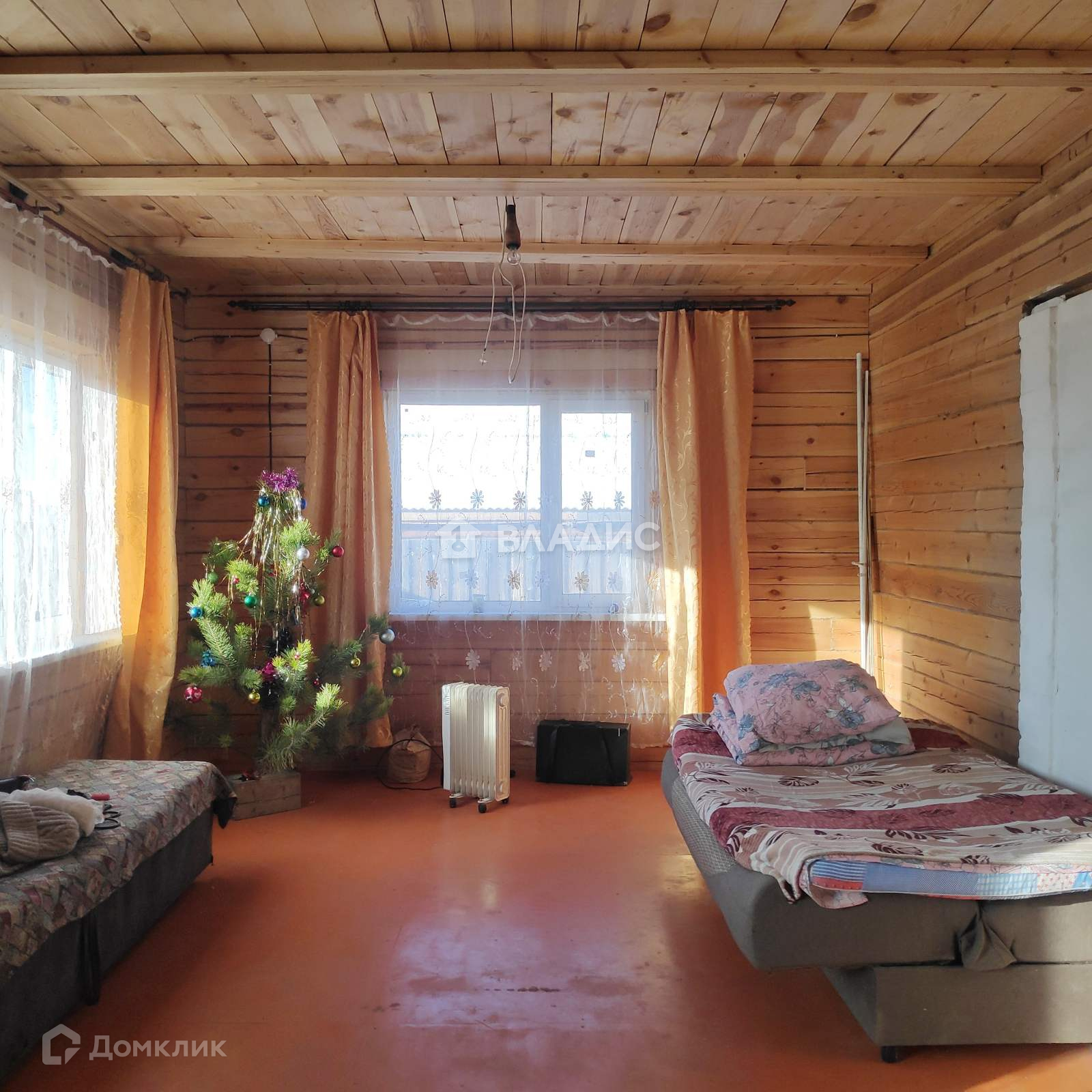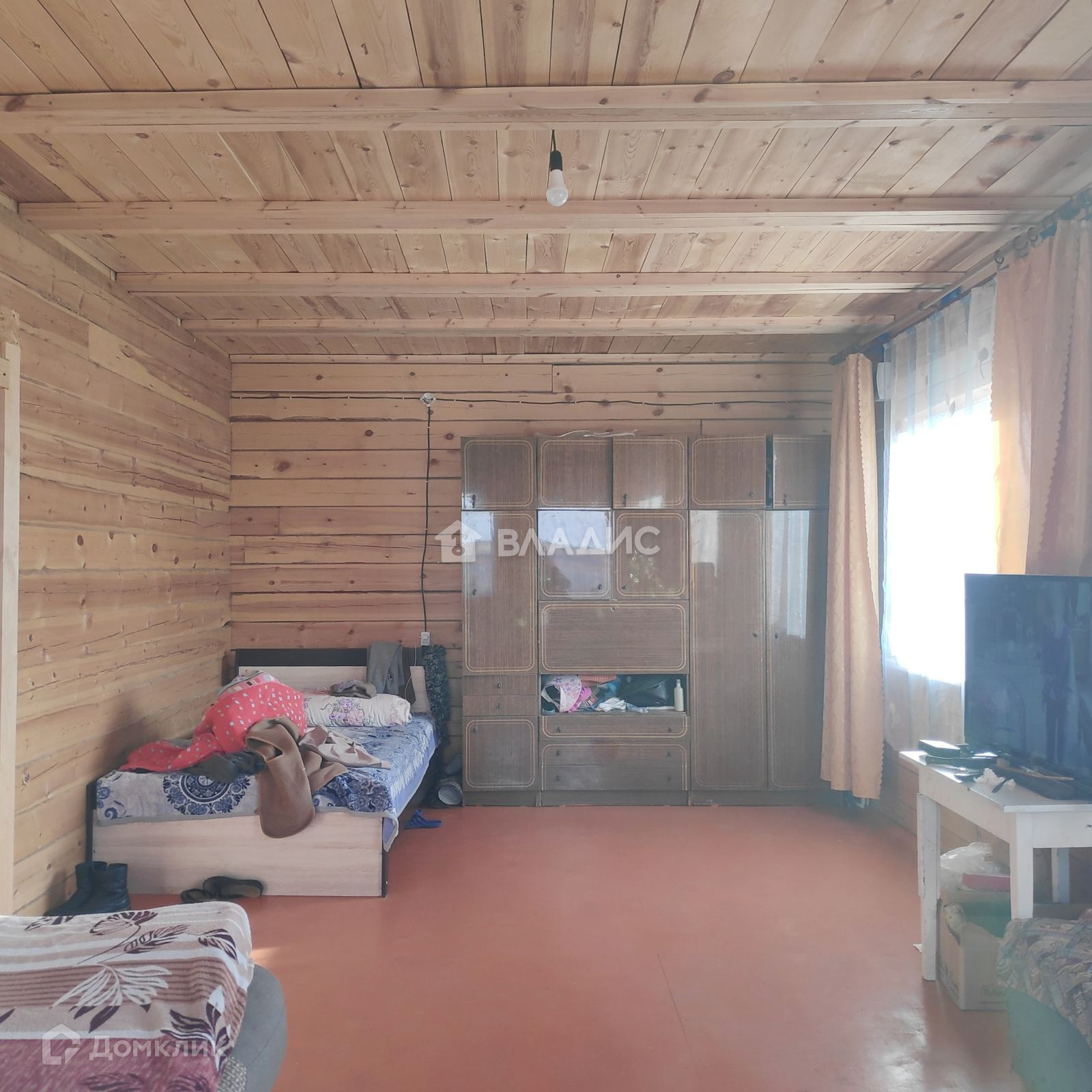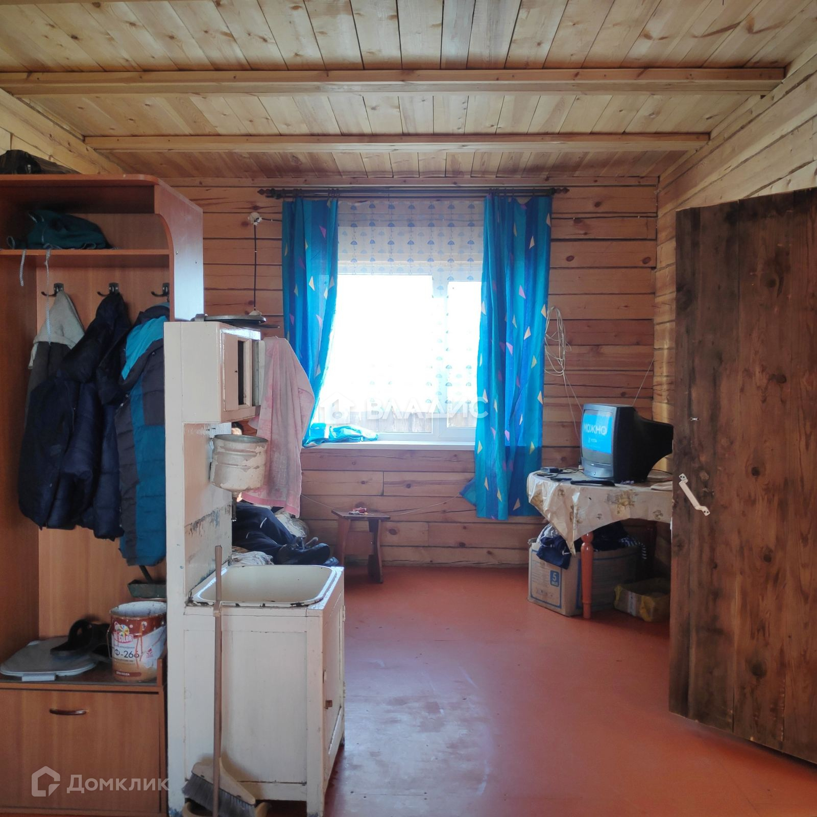 Пол, потолок из струганного неокрашенного бруса.