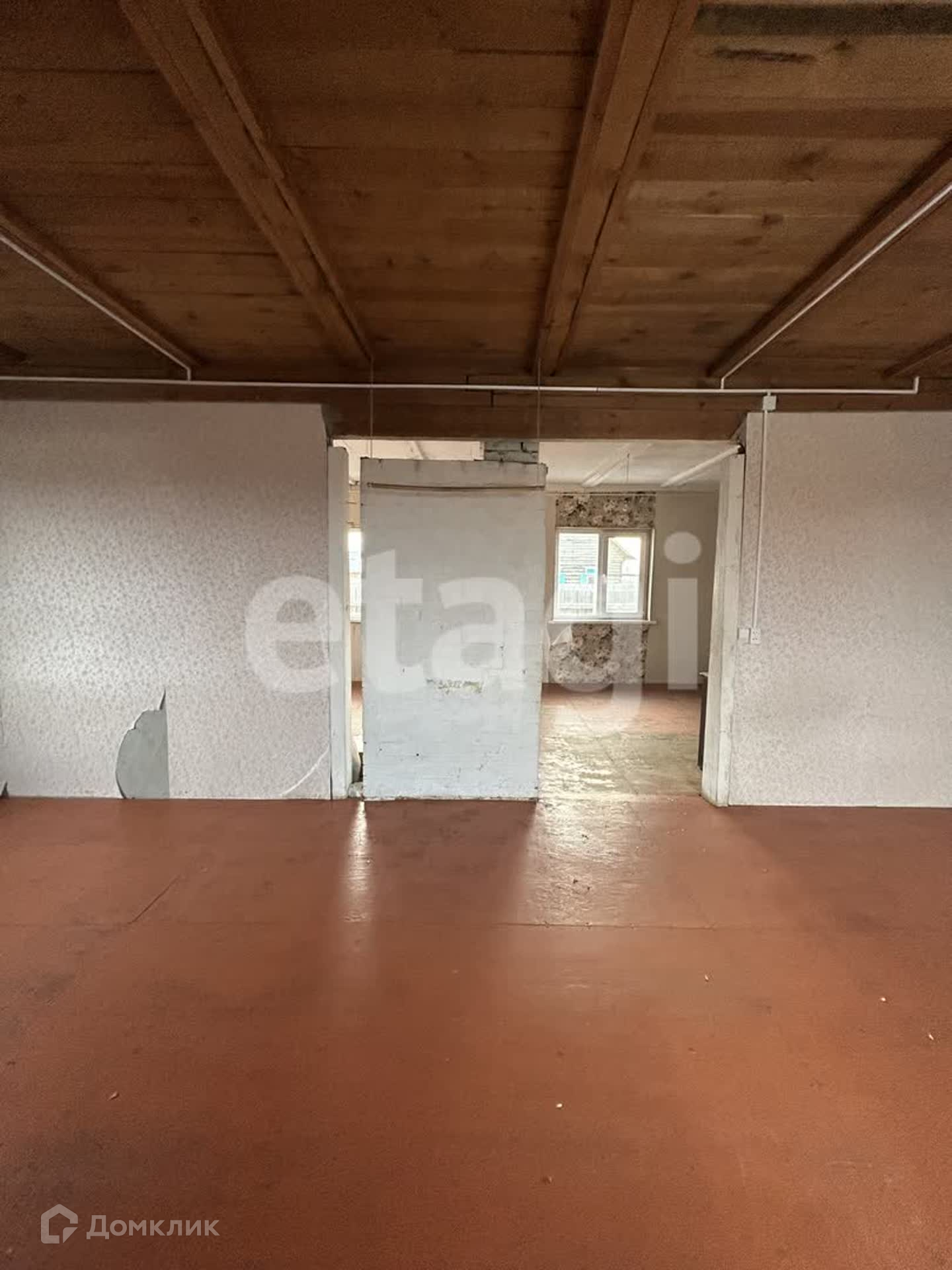 Дом 2016 года постройки из бруса 18*18. Дом с частичным ремонтом: проводки выведены, вода заведена от скважины, фундамент ленточный, установлены окна ПВХ, пол фанера, печное отопление, стены оштукатурены-обои.