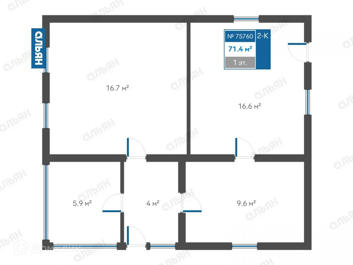 Общая площадь 71.4 м2