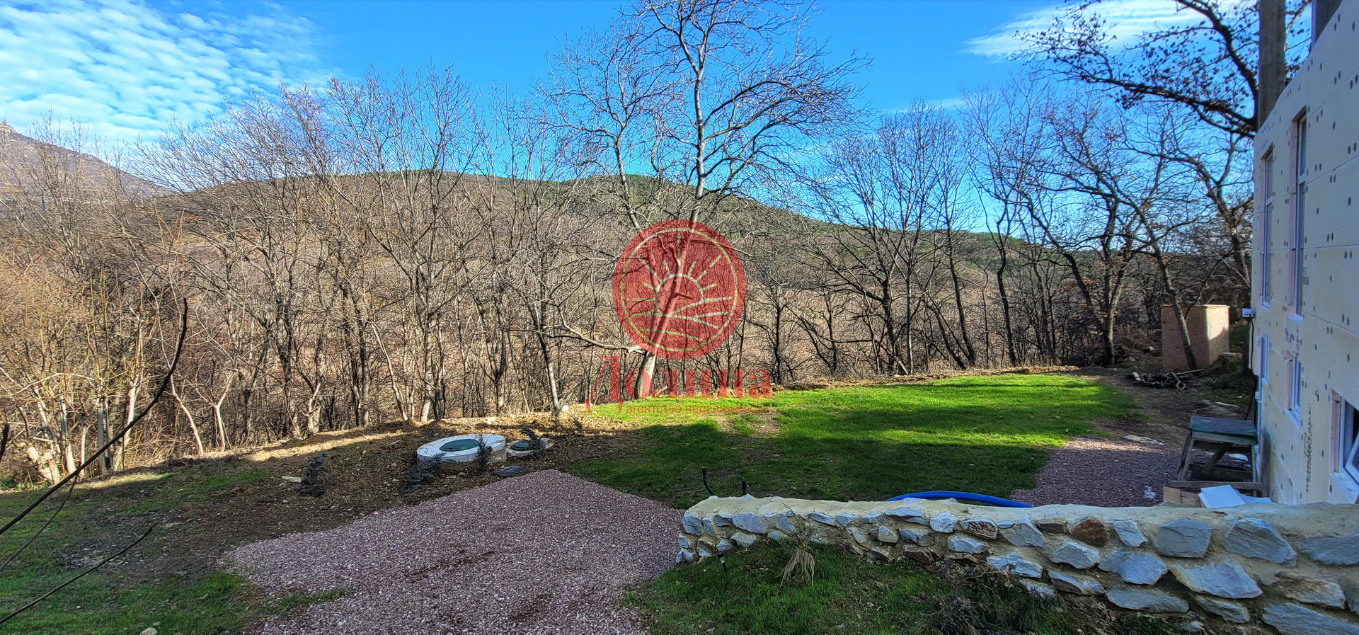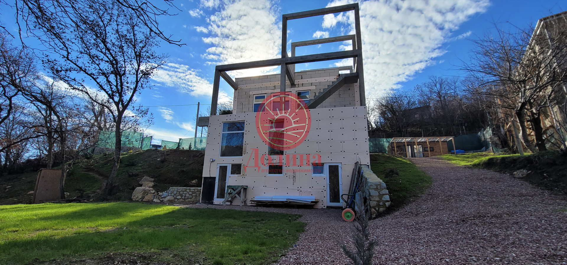 Отсыпаны площадка у дома и дорожка к гостевой части.