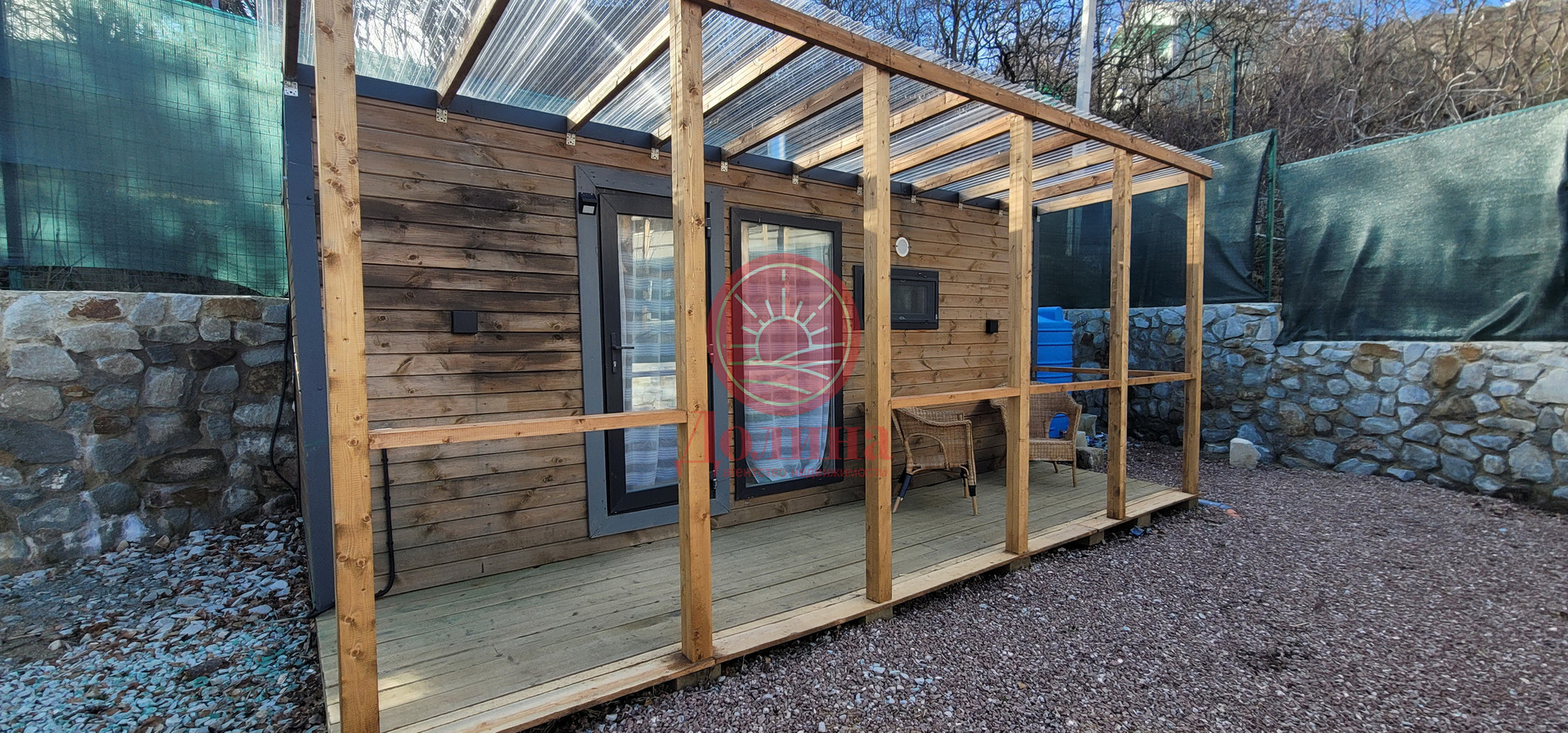Есть отдельно стоящий домик с террасой к нему подведено электричество, вода,