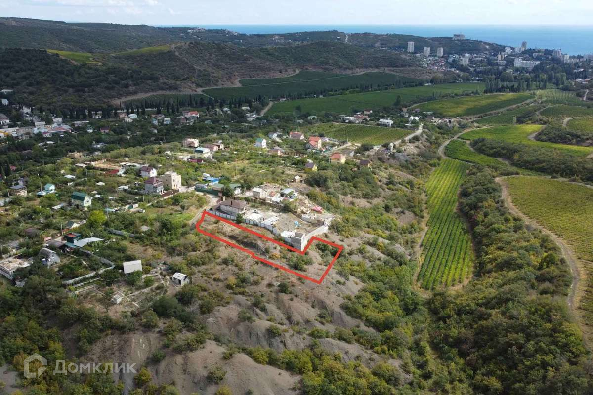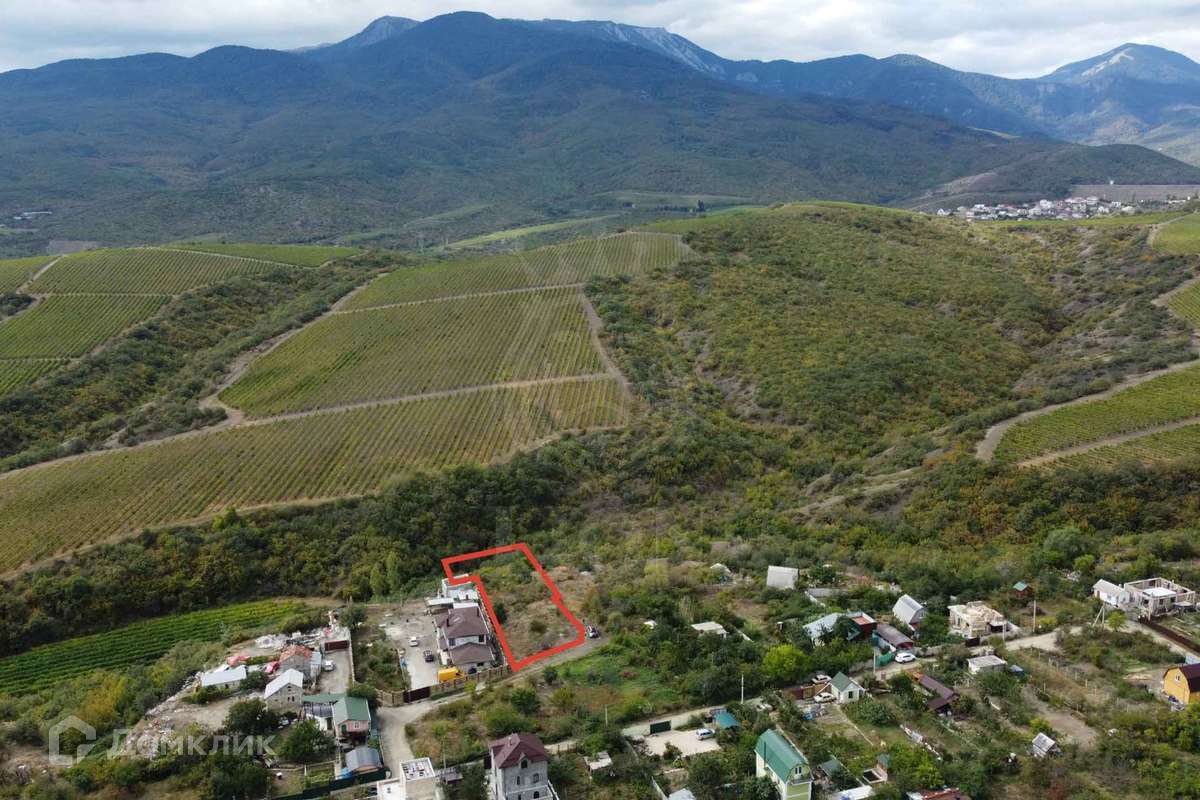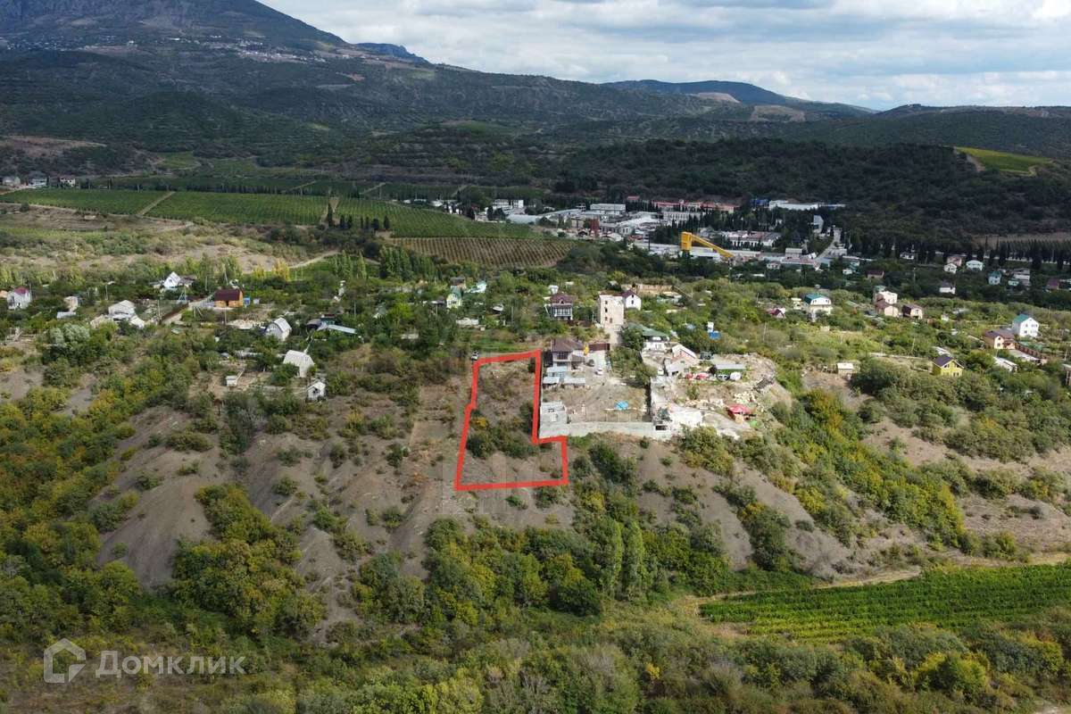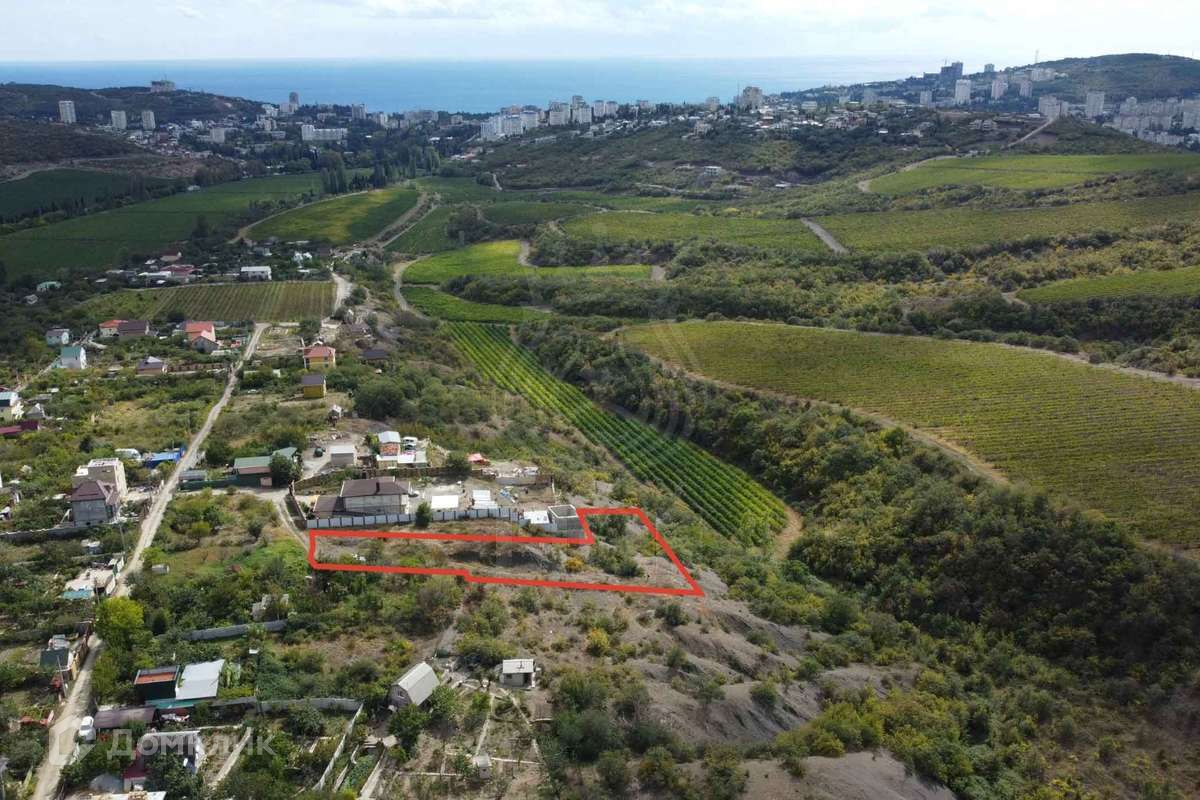 Объект № 3230 Продается участок площадью 18 соток в Алуште, район Оливковая роща. Вид открывается на горы Алушты и виноградники, коммуникации рядом. Расположение участка с не перекрываемым видом в тупиковой части улицы.