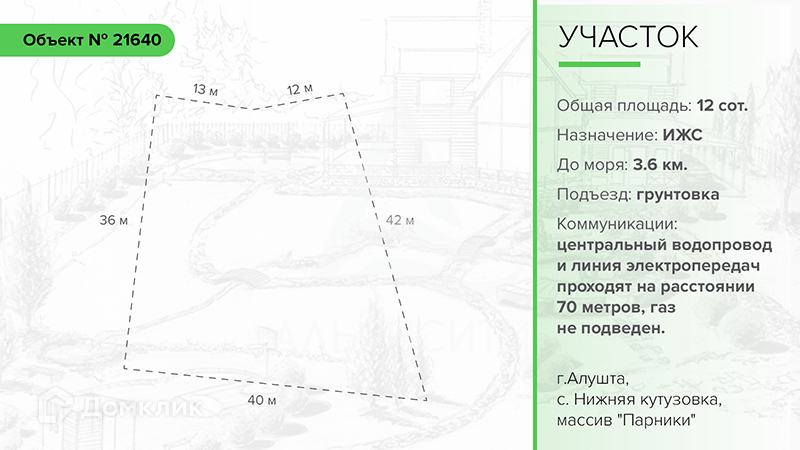 Участок находится на выезде города Алушта в востребованном районе, который местные называют Оливковой рощей.