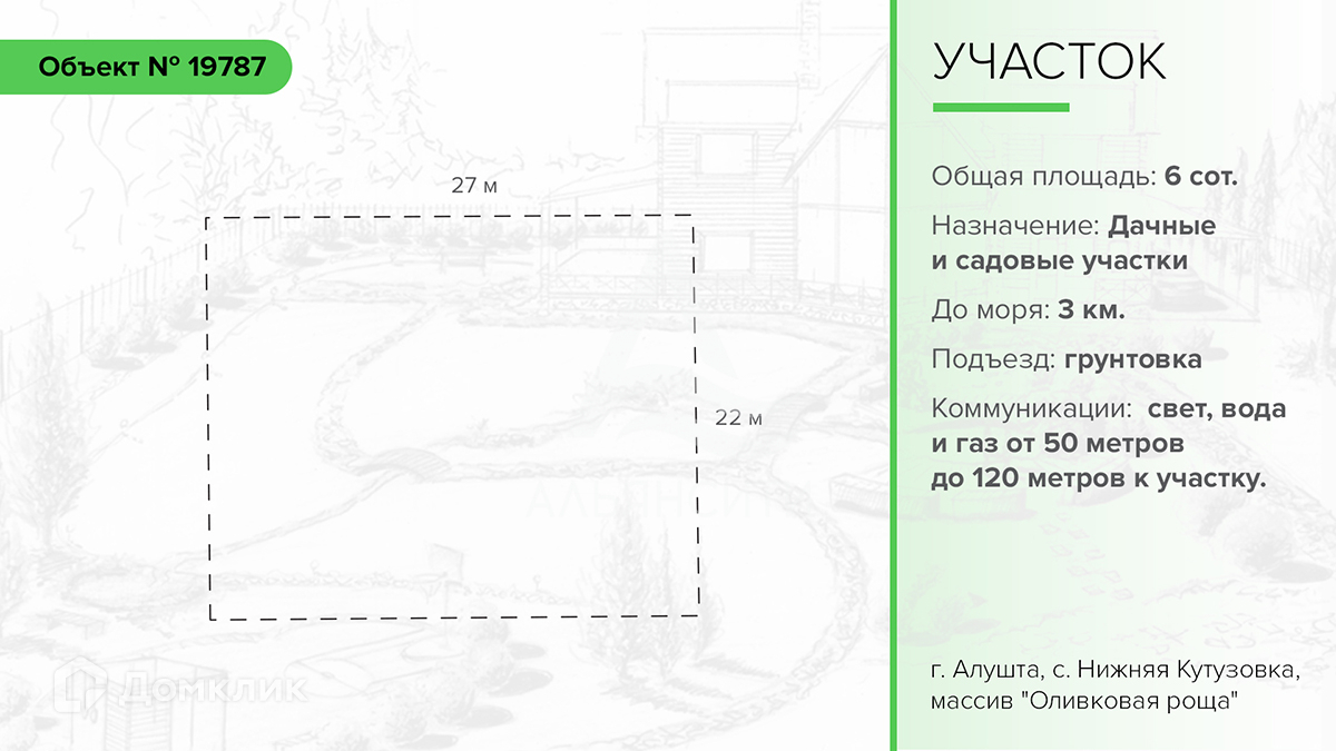Продается земельный участок в городе Алушта, село Нижняя Кутузовка. Общая площадь участка: 6 соток. Назначение участка садово-огородническое.