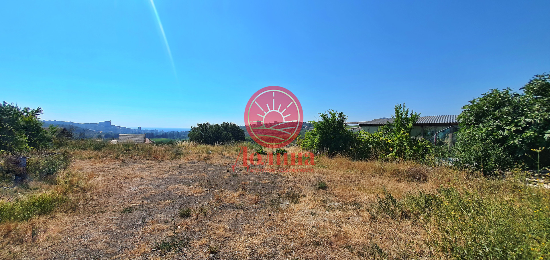 Территория участка ровная без уклона, с потрясающим, не перекрываемым видом на 360 градусов, на участке имеются плодоносящие деревья.