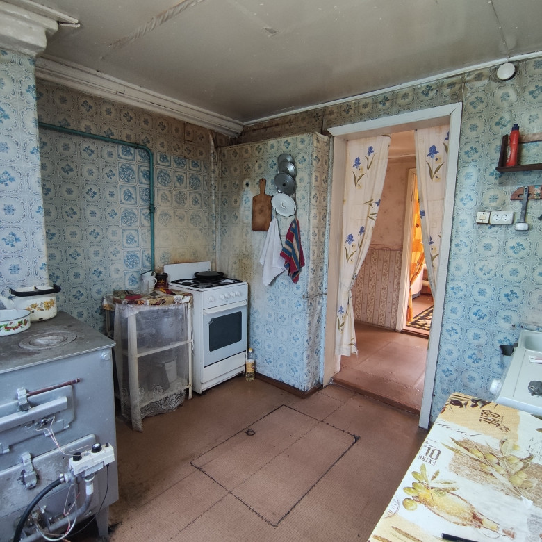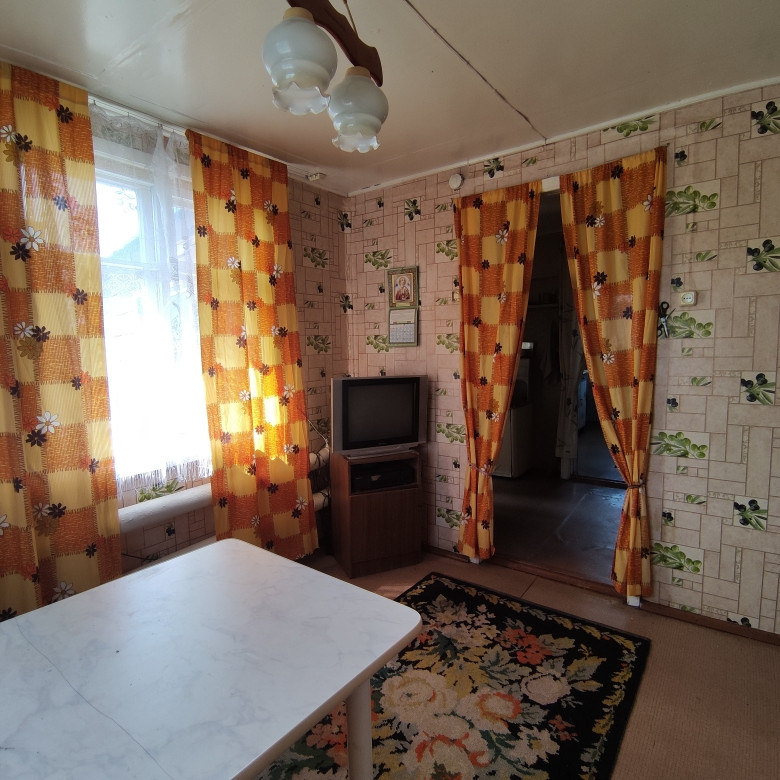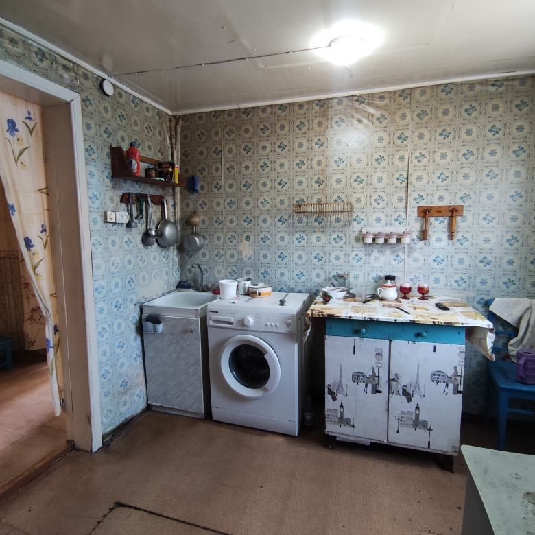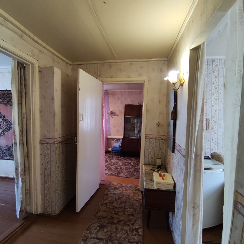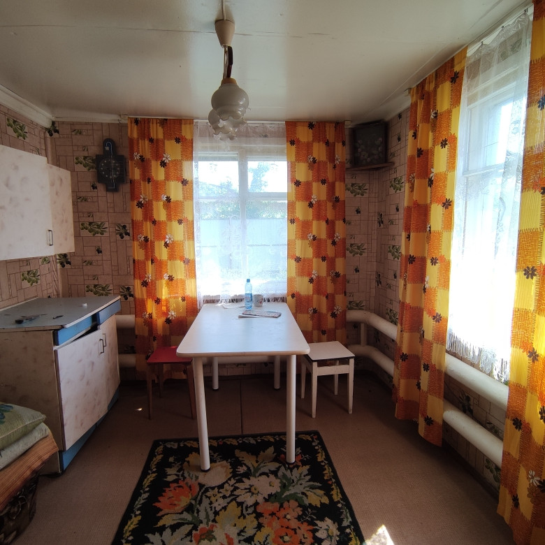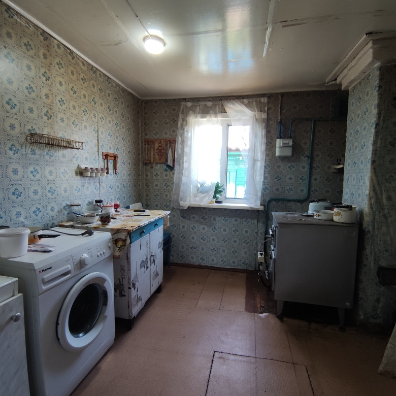 Дом брусовой, жилой с коммуникациями: электричество, центральный водопровод, газовое отопление, выгребная яма. Обшит сайдингом, новая крыша. Туалет на улице. Четыре комнаты+кухня+столовая+веранда, 2 подпола (сухие), окна ПВХ, установлены приборы учета на воду, газ и электричество. Один взрослый собственник.