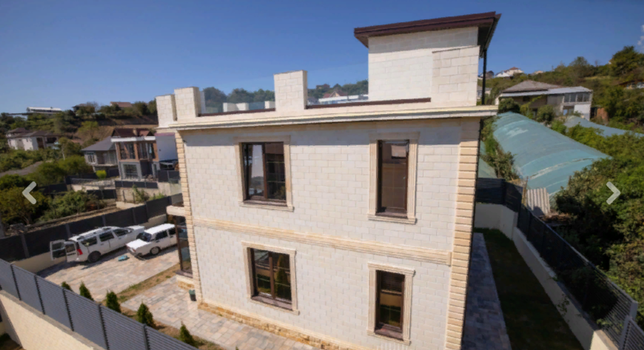 Дом состоит из 2 этажей, а также эксплуатируемой кровли, с высоты которой можно наслаждаться тишиной, отличным видом на море и горы.