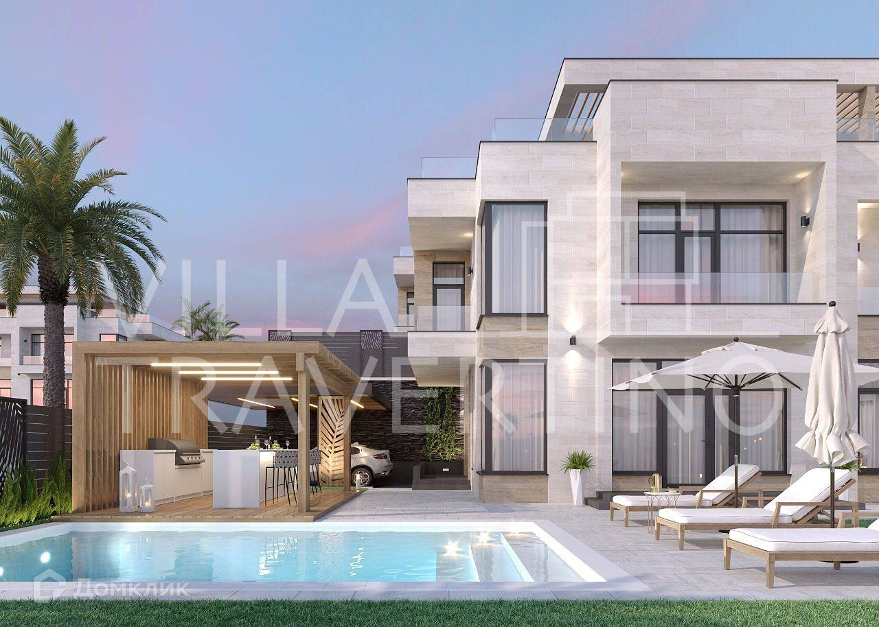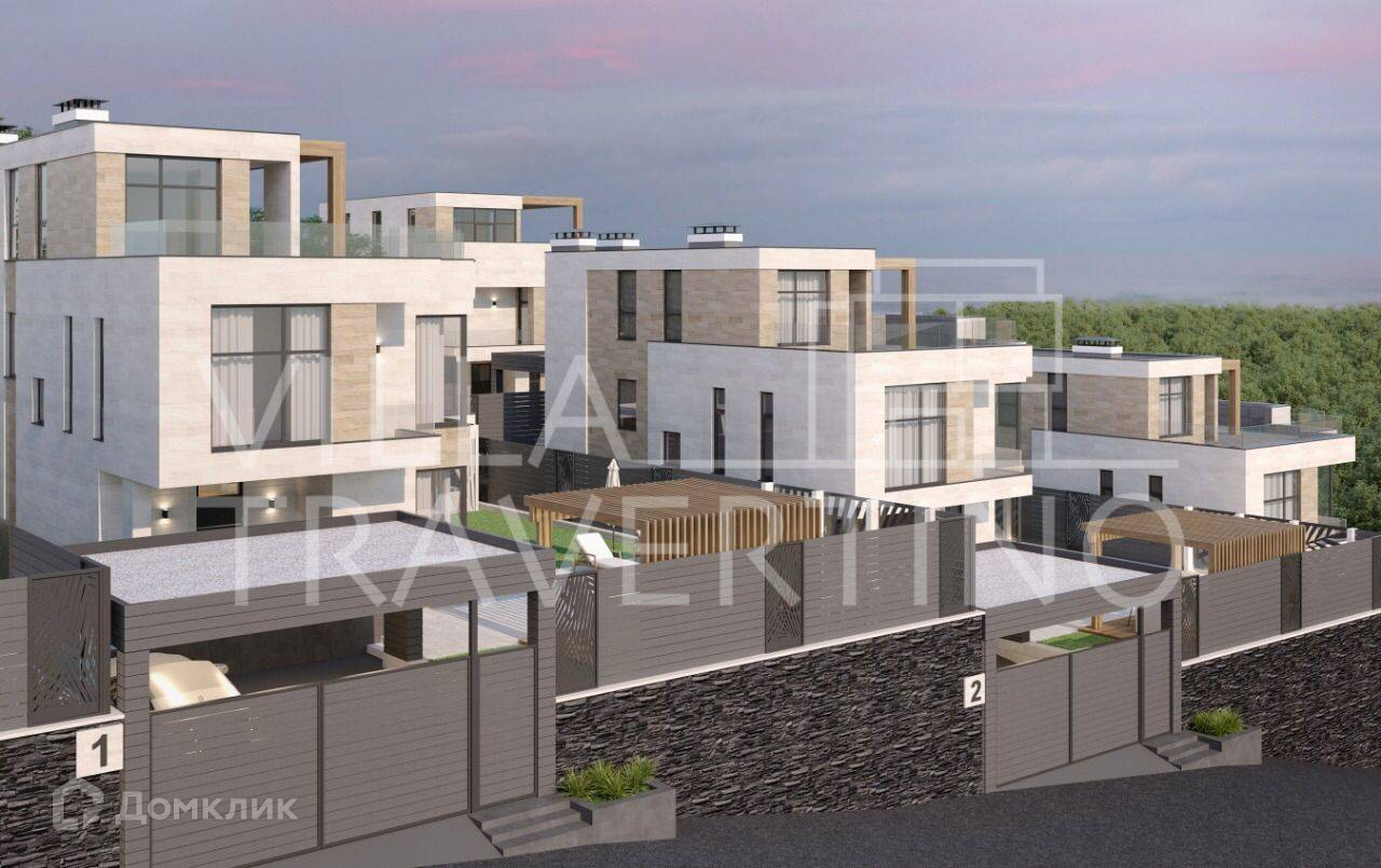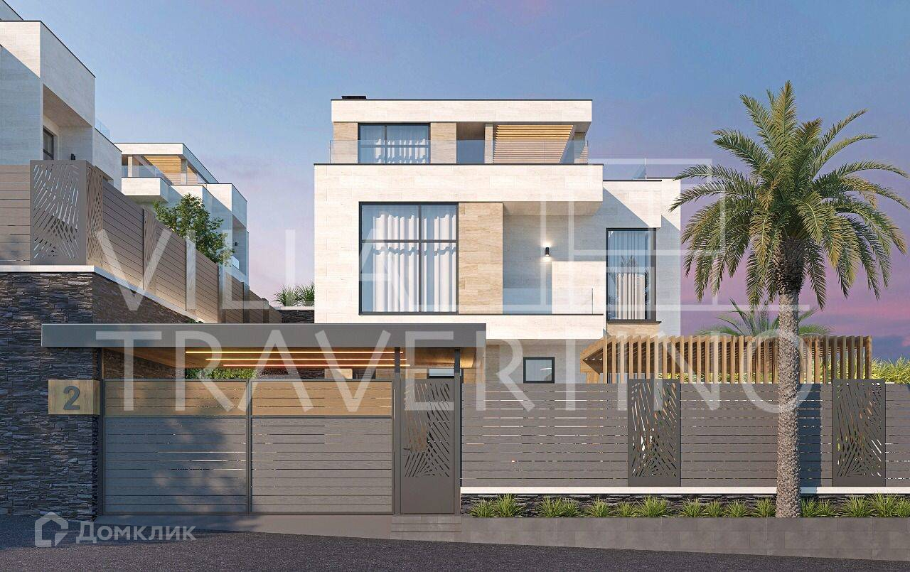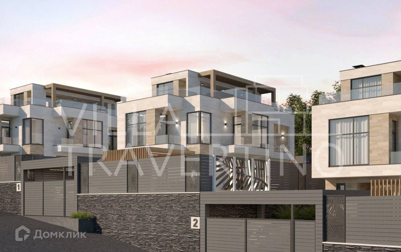Лот № 168511. Комплекс вилл «Villa Travertino» расположен на побережье Черного моря в живописном округе города Сочи вдали от городской суеты.Непосредственная близость к горной реке Псоу дарит чистый свежий воздух, а холмистая местность – прекрасный вид на море и окружающую природу.При проектировании и строительстве комплекса были реализованы все потребности для комфорта: функциональные планировки с гардеробными, витражное остекление с великолепным обзором, а укрепление стен и утепление всей виллы гарантируют уютное проживание и в зимний период.Для отличного времяпрепровождения имеется благоустроенная территория с ландшафтным дизайном и озеленением, зоны отдыха, открытая терраса на крыше и подогреваемый бассейн. Фасадная отделка из природного камня «Травертин».У Травертина высокая устойчивость к температурным перепадам, гораздо выше, чем умрамора. Камень хорошо переносит большой температурный разбег – от жёсткихморозов до длительного зноя.Камень не промерзает и не разрушается даже в условиях морозных российских зим, безпроблем переносит чередование оттепелей и заморозков.Как строительный и отделочный материл, камень применялся, начиная с эпохи античности, с тех пор сохранились не только жилые дома из травертина, но и многие знаковые строения, например, Колизей и более поздний собор св. Петра в Ватикане (Рим).Травертин в отличие от камня искусственного происхождения при нагревании фасадасолнцем не выделяет вредных веществ и не имеет радиоактивного фона, так как не имеет полимерных смол в основе. Он полностью безвреден для человека. Благодаря пористости плиты из травертина, он легче плотных изделий из гранита или мрамора и дает меньшую нагрузку на стены.Преимущества: - Витражное остекление алюминиевым профилем с расширенным утепленным стеклопакетом- Функциональные планировкис гардеробными - Открытая эксплуатируемая терраса на крыше- Подогреваемый бассейн- Отведенные места под зону барбекю- Навесы для 2 автомобилей- Система видеонаблюдения по периметруВ коттеджах установлено витражное остекление с алюминиевым профилем с расширенным утепленным стеклопакетом* Влага, мороз, перепады температуры, солнечные лучи не воздействуют на витражи из алюминия, что актуально для погодных условий местности. Алюминиевые оконные профили долговечны, прочны и устойчивы к неблагоприятным условиям внешней среды, и значительно тоньше аналогов из дерева или пвх Функциональные планировки с гардеробными  Планировка первого этажа сделана по принципу open-space, что дает много вариантов планирования пространства. Все планировки домов предусматривают мастер-спальни с личным просторным санузлом и гардеробной и имеют оптимальные площади.