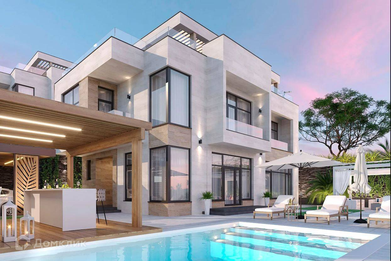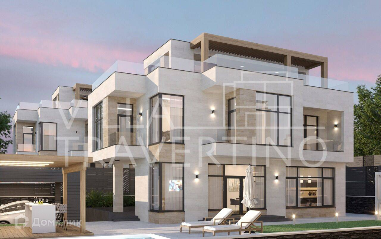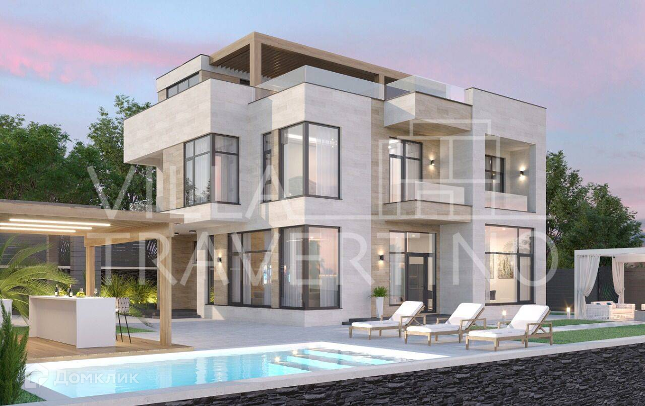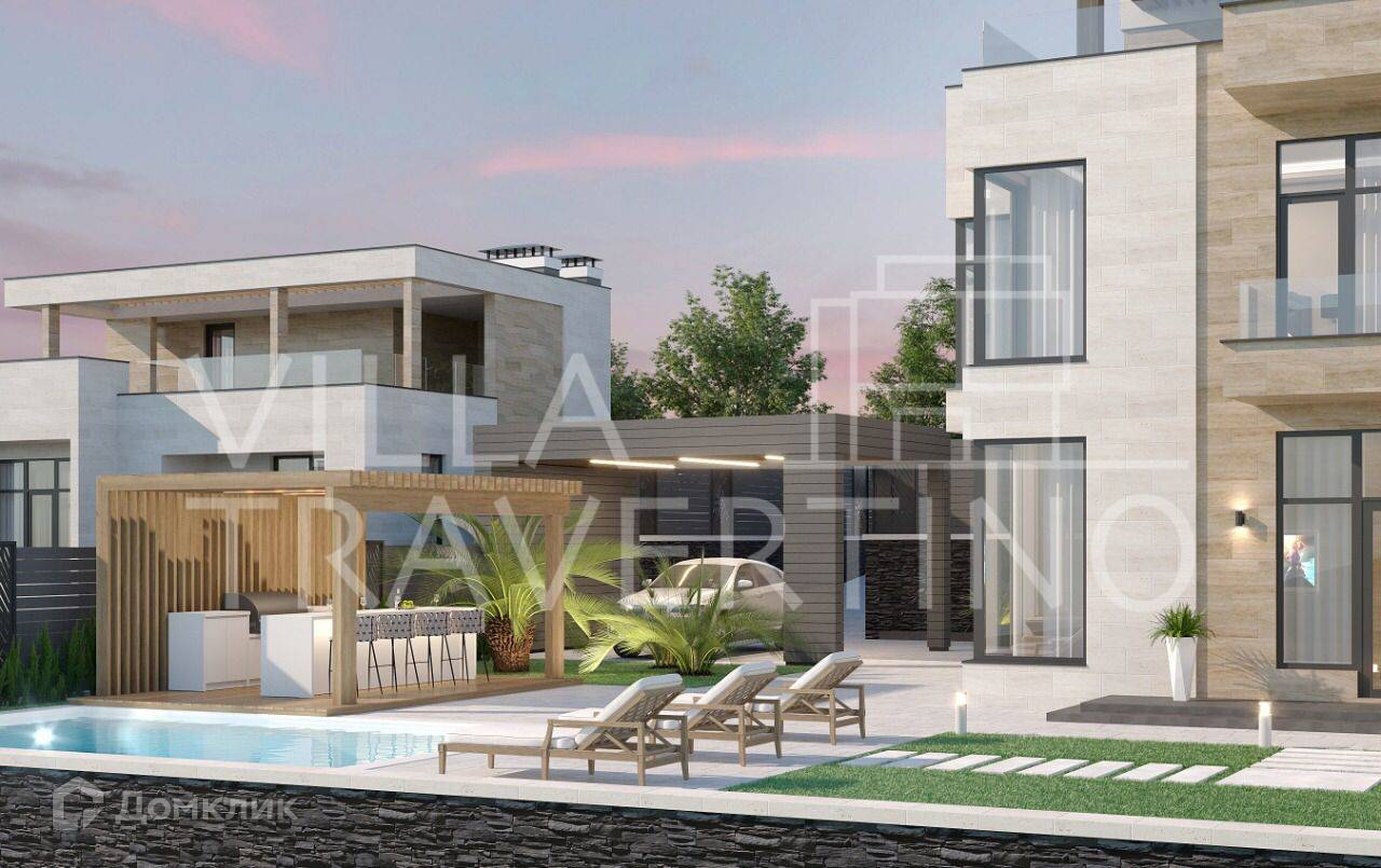 Лот № 168511. Комплекс вилл «Villa Travertino» расположен на побережье Черного моря в живописном округе города Сочи вдали от городской суеты.Непосредственная близость к горной реке Псоу дарит чистый свежий воздух, а холмистая местность – прекрасный вид на море и окружающую природу.При проектировании и строительстве комплекса были реализованы все потребности для комфорта: функциональные планировки с гардеробными, витражное остекление с великолепным обзором, а укрепление стен и утепление всей виллы гарантируют уютное проживание и в зимний период.Для отличного времяпрепровождения имеется благоустроенная территория с ландшафтным дизайном и озеленением, зоны отдыха, открытая терраса на крыше и подогреваемый бассейн. Фасадная отделка из природного камня «Травертин».У Травертина высокая устойчивость к температурным перепадам, гораздо выше, чем умрамора. Камень хорошо переносит большой температурный разбег – от жёсткихморозов до длительного зноя.Камень не промерзает и не разрушается даже в условиях морозных российских зим, безпроблем переносит чередование оттепелей и заморозков.Как строительный и отделочный материл, камень применялся, начиная с эпохи античности, с тех пор сохранились не только жилые дома из травертина, но и многие знаковые строения, например, Колизей и более поздний собор св. Петра в Ватикане (Рим).Травертин в отличие от камня искусственного происхождения при нагревании фасадасолнцем не выделяет вредных веществ и не имеет радиоактивного фона, так как не имеет полимерных смол в основе. Он полностью безвреден для человека. Благодаря пористости плиты из травертина, он легче плотных изделий из гранита или мрамора и дает меньшую нагрузку на стены.Преимущества: - Витражное остекление алюминиевым профилем с расширенным утепленным стеклопакетом- Функциональные планировкис гардеробными - Открытая эксплуатируемая терраса на крыше- Подогреваемый бассейн- Отведенные места под зону барбекю- Навесы для 2 автомобилей- Система видеонаблюдения по периметруВ коттеджах установлено витражное остекление с алюминиевым профилем с расширенным утепленным стеклопакетом* Влага, мороз, перепады температуры, солнечные лучи не воздействуют на витражи из алюминия, что актуально для погодных условий местности. Алюминиевые оконные профили долговечны, прочны и устойчивы к неблагоприятным условиям внешней среды, и значительно тоньше аналогов из дерева или пвх Функциональные планировки с гардеробными  Планировка первого этажа сделана по принципу open-space, что дает много вариантов планирования пространства. Все планировки домов предусматривают мастер-спальни с личным просторным санузлом и гардеробной и имеют оптимальные площади.