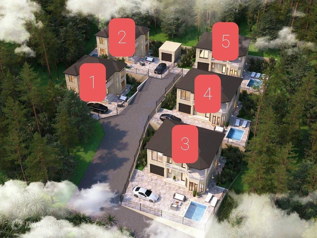 Коттеджный посёлок состоит из 5 домов, имеет закрытую территорию, автоматические ворота.