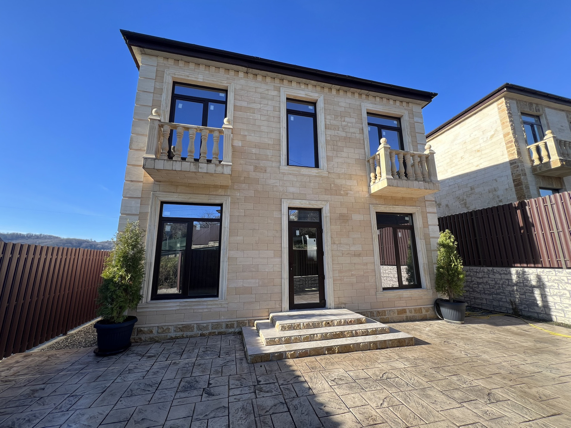 Строение дома: монолит каркас, блочное заполнение, утеплитель 5 см, отделка дагестанский камень, перекрытия все монолит.