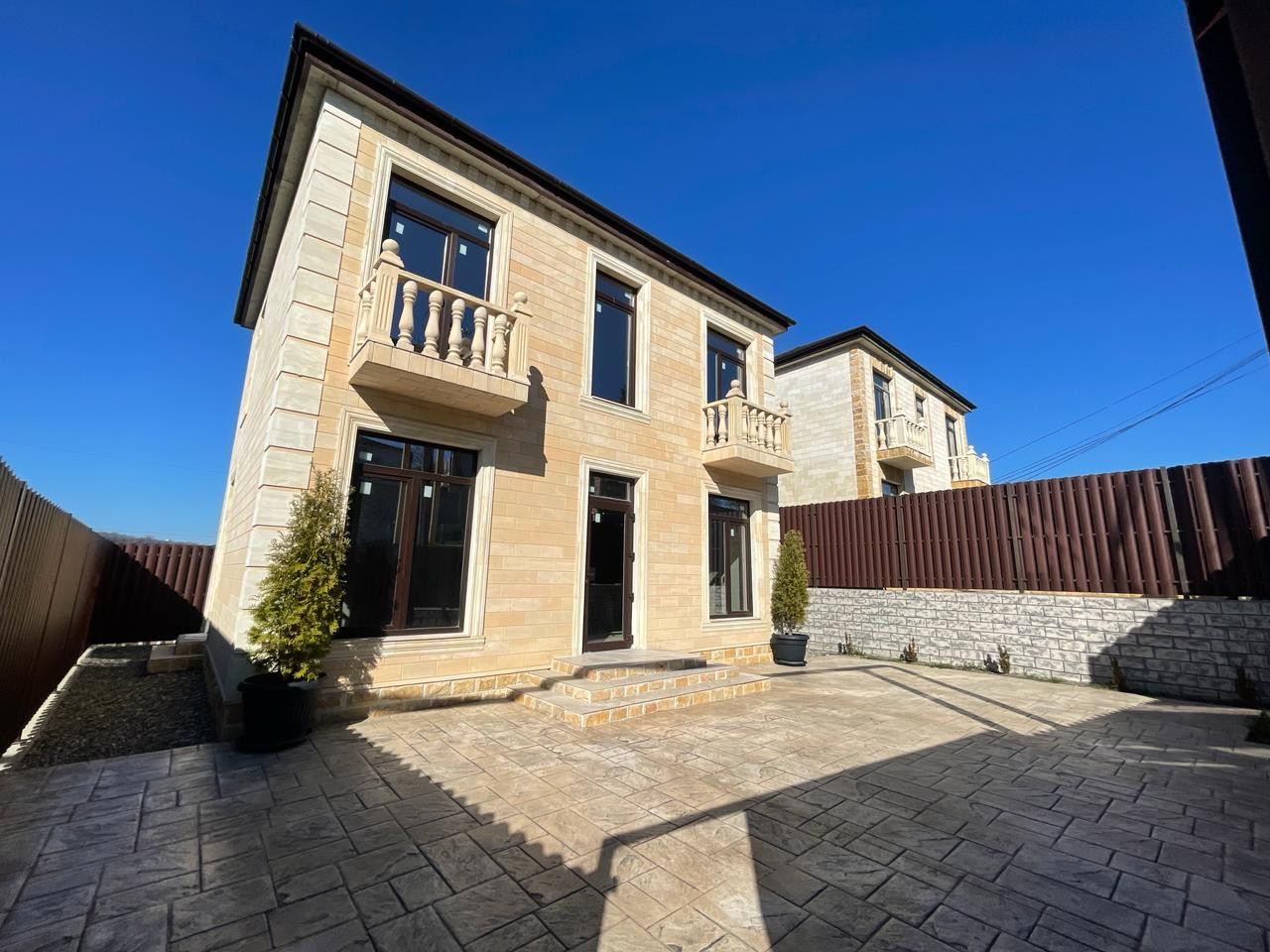 Продаётся дом в два этажа, фасад отделан натуральным камнем.