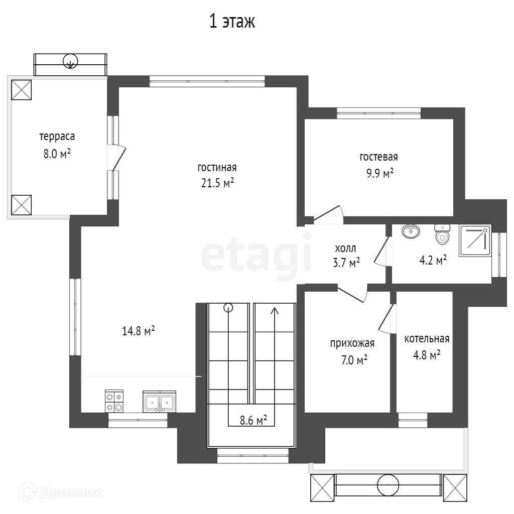 Дом газифицирован, водоснабжение - скважина, канализация - ЛОС, электричество 15 кВт. Высота потолков 3,3 м.