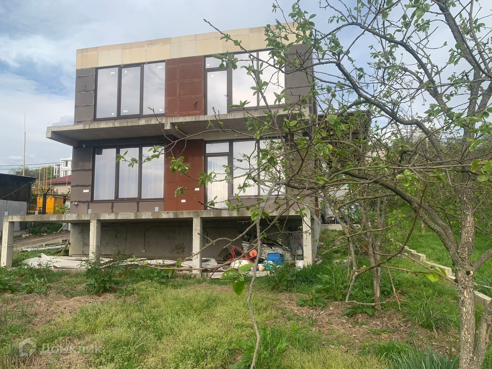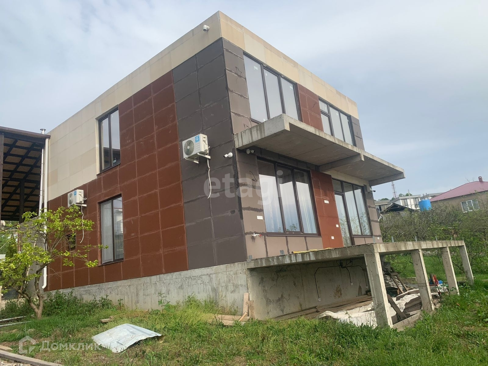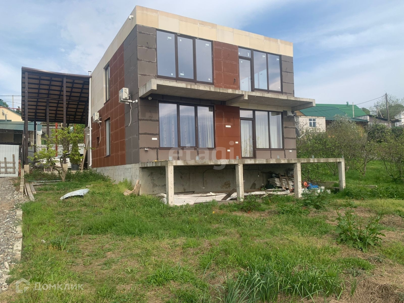Территория: газон, тротуарная плитка, виноград, плодовые деревья .Подготовлено место для веранды. Есть место для зоны барбекю . 2 парковочных места.