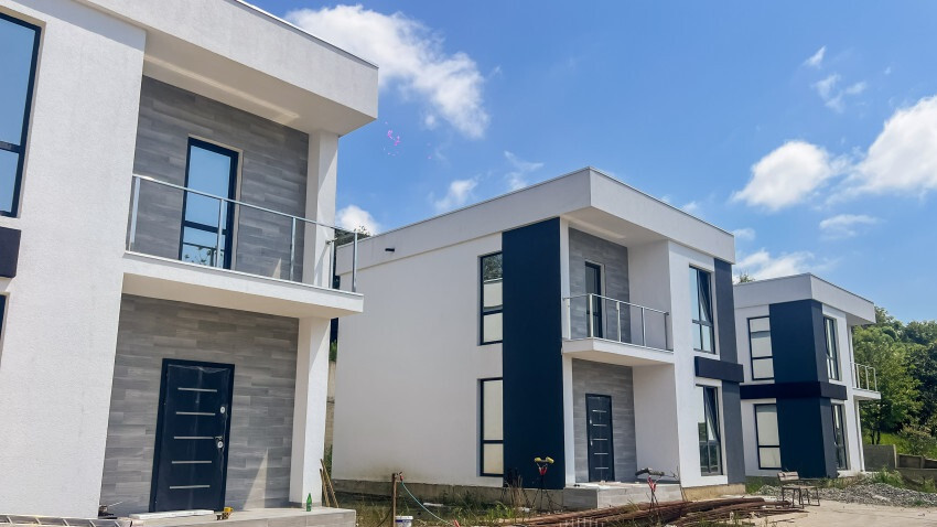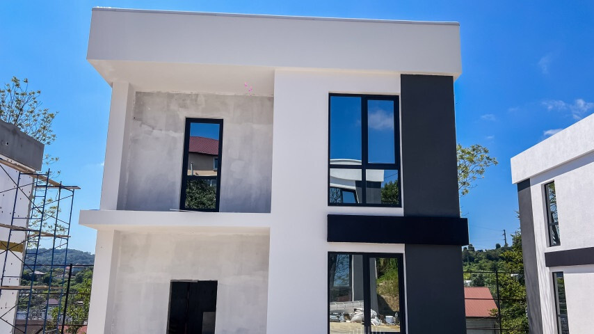 Коттеджный поселок из 8 дом. Все дома выполнены в одном стиле. Плошадь дома 115 квадратных метров на 3 сотках земли. Закрытая территория , все дома между собой разделены забором высотой 1,5 метра. КП находиться всего в 3х километрах от моря и олимпийского парка. Рядом остановка общественного транспорта , до школы номер 100 всего 2 остановки, до центра Адлера 10 минут на машине. Все дома монолитные с блочным заполнением. Коммуникации центральные ( свет и вода ) , септик у каждого дома свой , есть возможность подключить газ