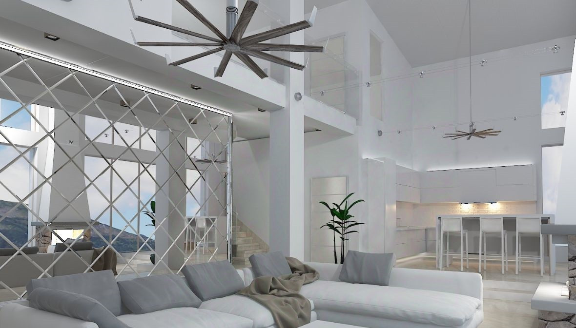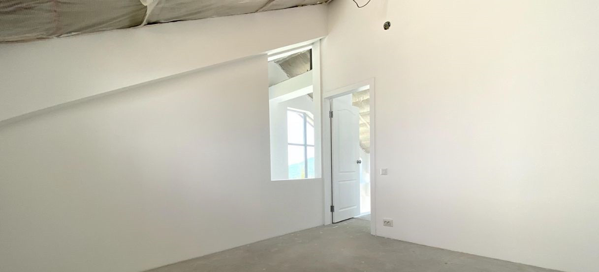 На первом этаже: прихожая с гардеробом и с гостевым с/у, гостиная (стяжка полов, стены под покраску),
