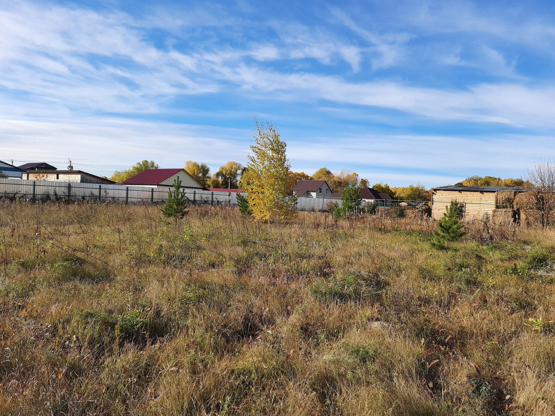 Земельный участок 16.5 соток. ИЖС. Место высокое, ровное. Участок правильной формы,  огорожен с трех сторон. На территории участка растут хвойные деревья.