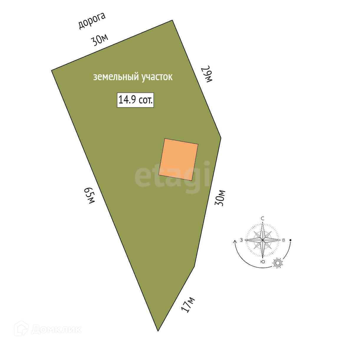 Площадь участка 14.9 сот.