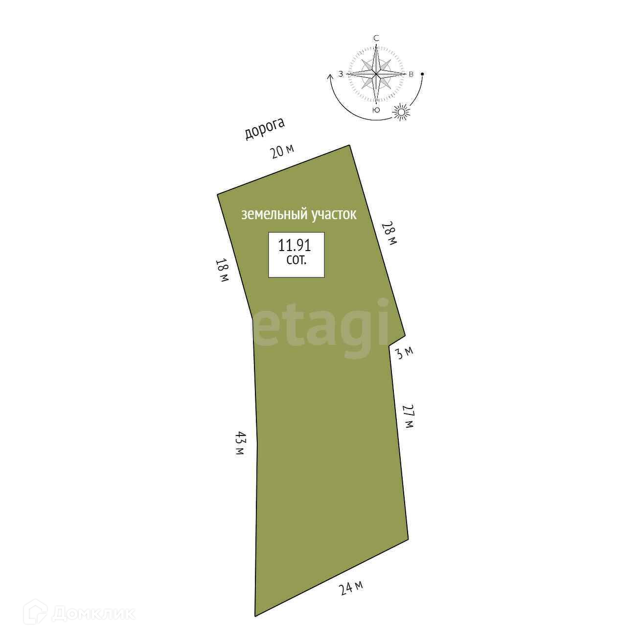 Площадь участка 11.9 сот.