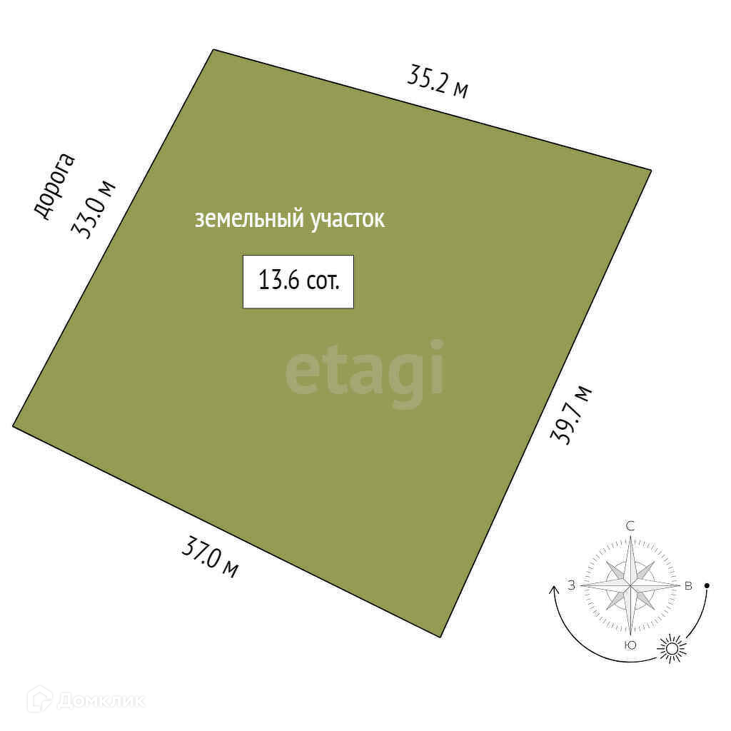 Площадь участка 13.6 сот.