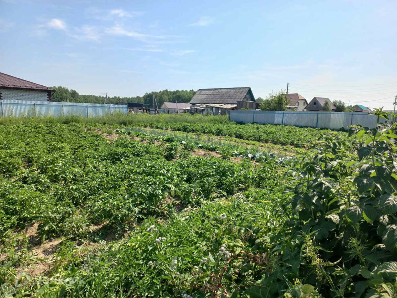 Земельный участок 16 соток, разработан с насаждениями: три яблони, вишня, смородина, малина. Участок огорожен забором по периметру.