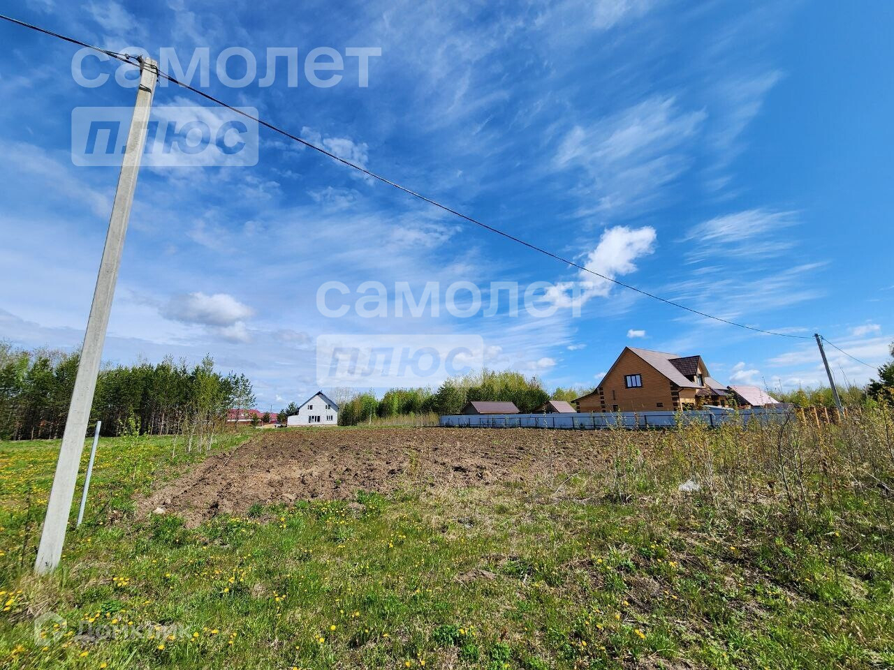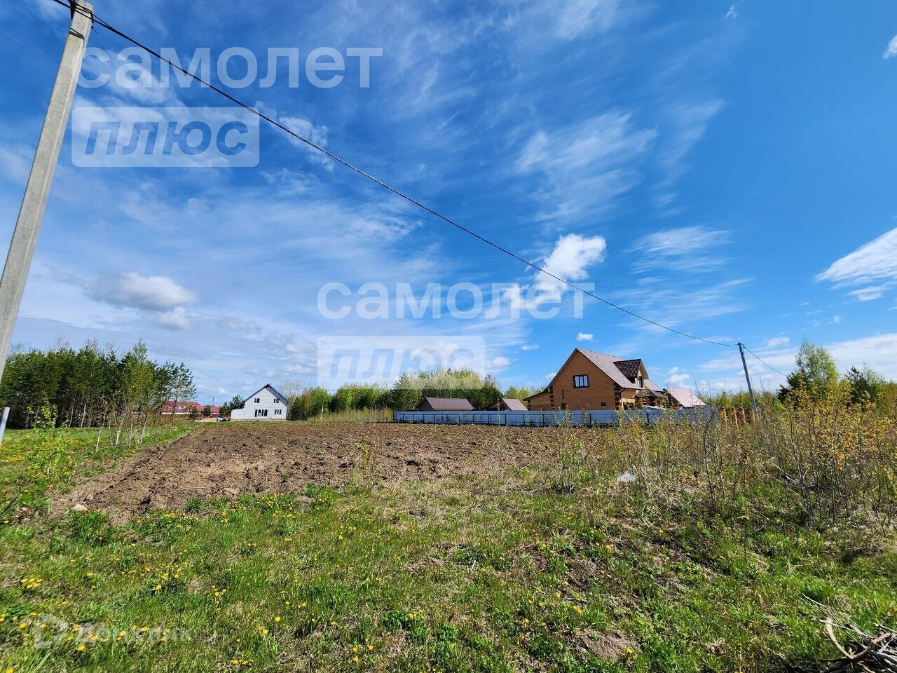 Рядом с участком Газ, столбы электропередач.