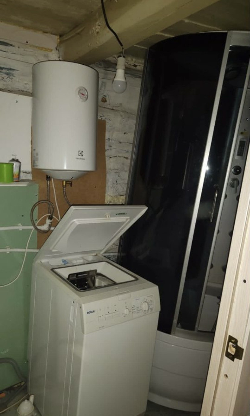 В доме есть электричество, вода, сан узел (унитаз, раковина, душ.кабина, стиральная машина), газ доведён до дома, но не подключён. Отапливается печкой, есть электрические керамические радиаторы.