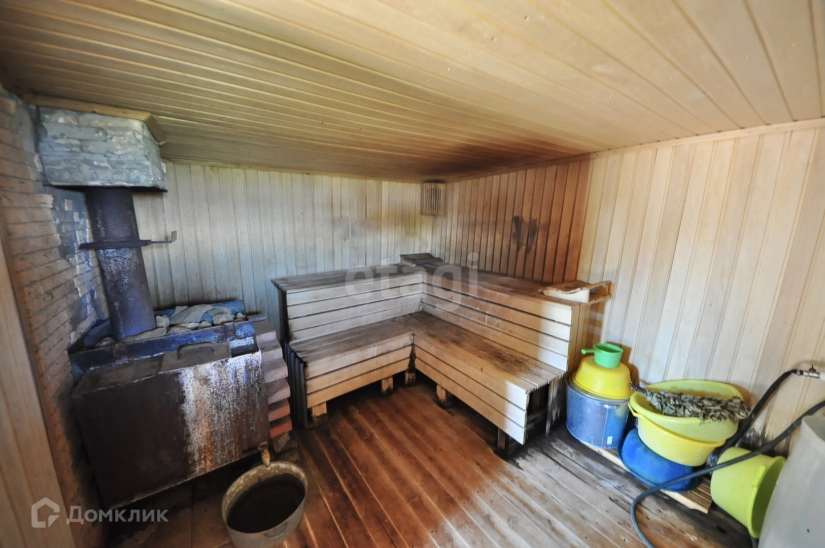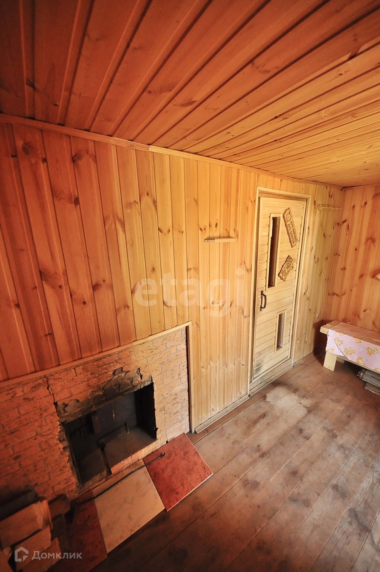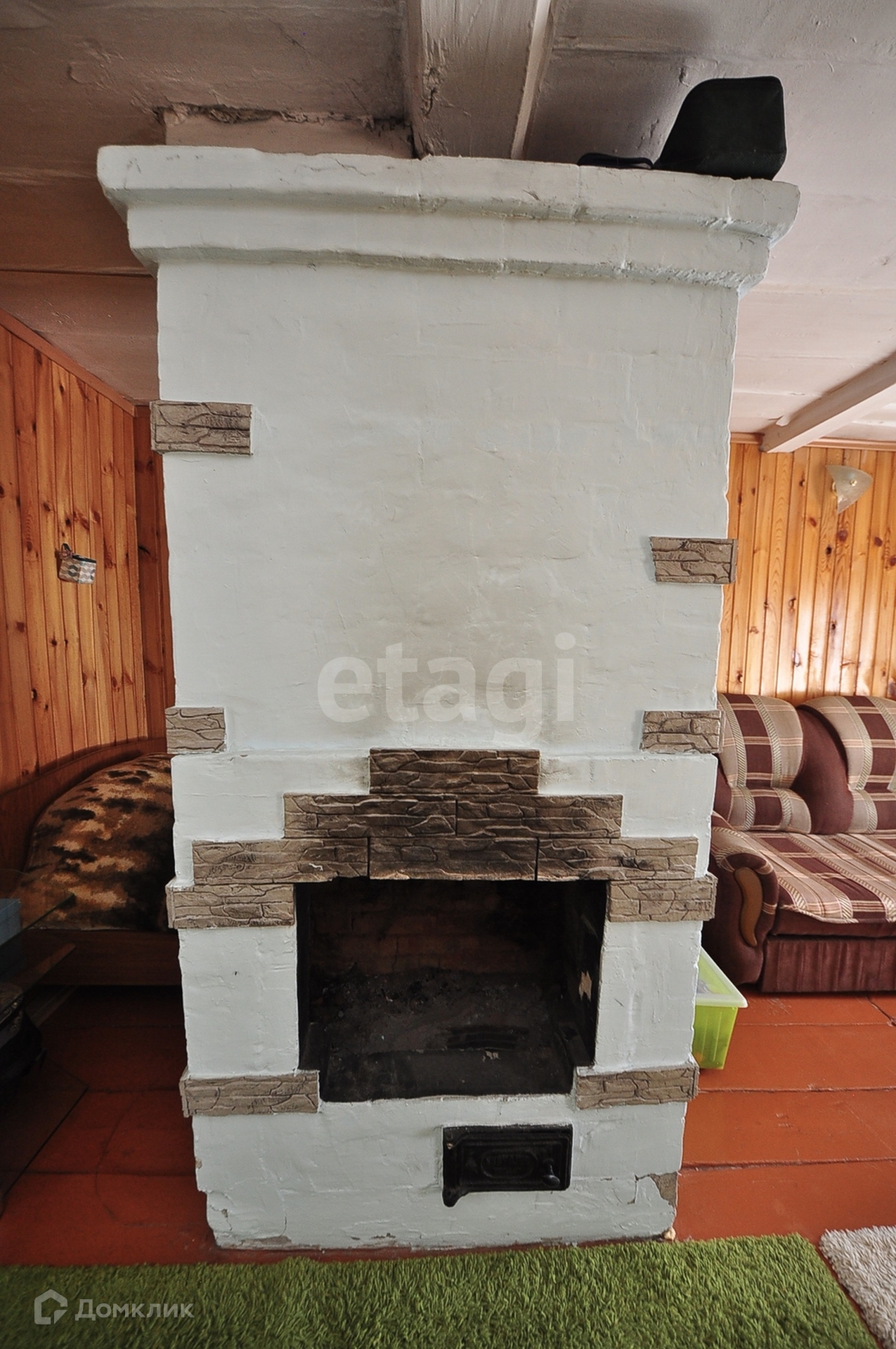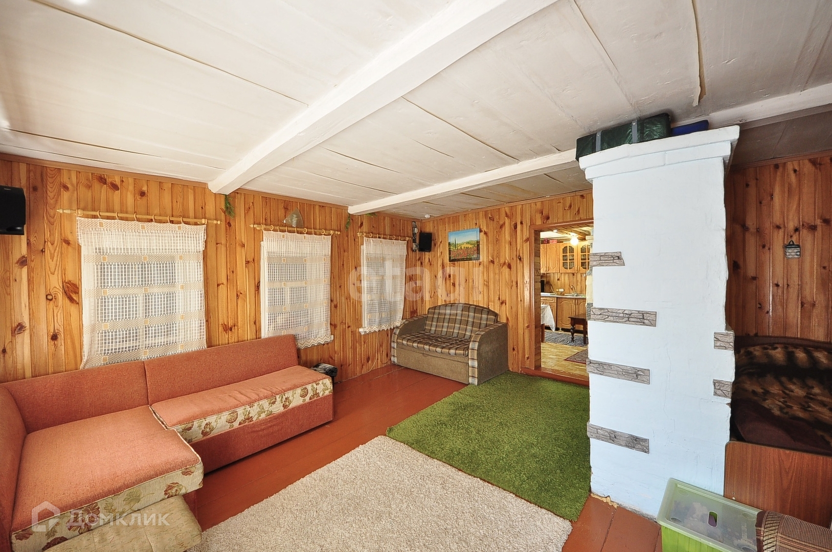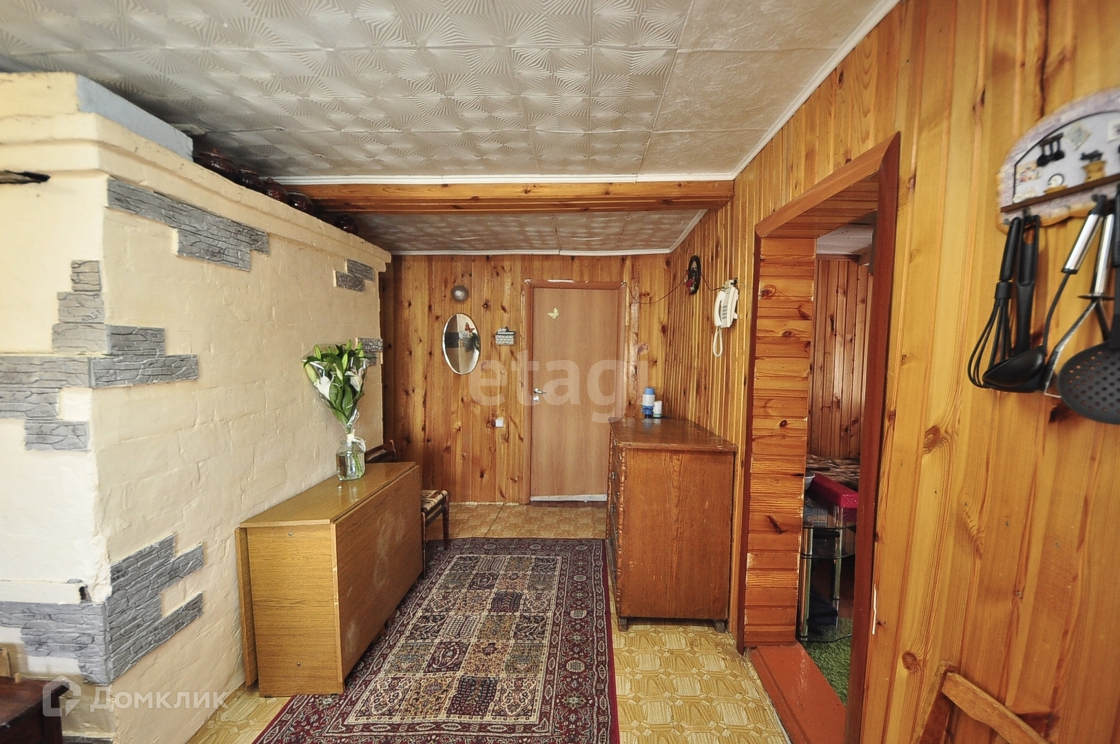 В доме имеется просторная комната с печью, стены и потолок во всем доме обшиты вагонкой.Просторная кухня, посередине печь. Имеется и другой вариант обогрева комнаты-современный конвектор. Водонагреватель в доме.