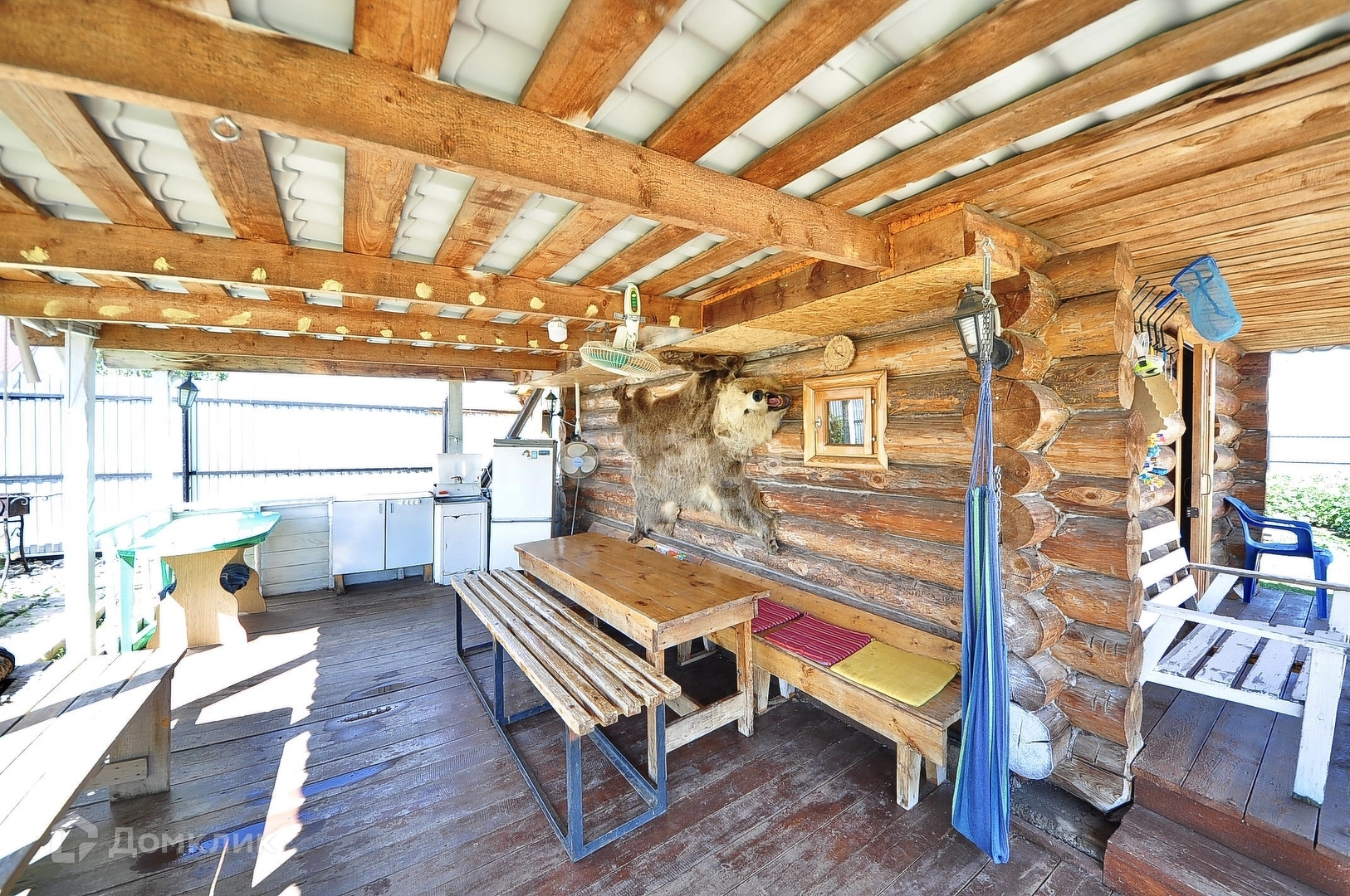 На участке есть баня под одной крышей с беседкой для приема гостей и отдыха. В беседке-сооружена летняя кухня. И здесь имеется водонагреватель и холодильник.