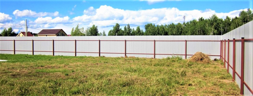 Огорожен со всех сторон профлистом. На участке строений нет.  Ровный. Заезд есть с обеих сторон участка. На участке 1500 блоков для строительства.