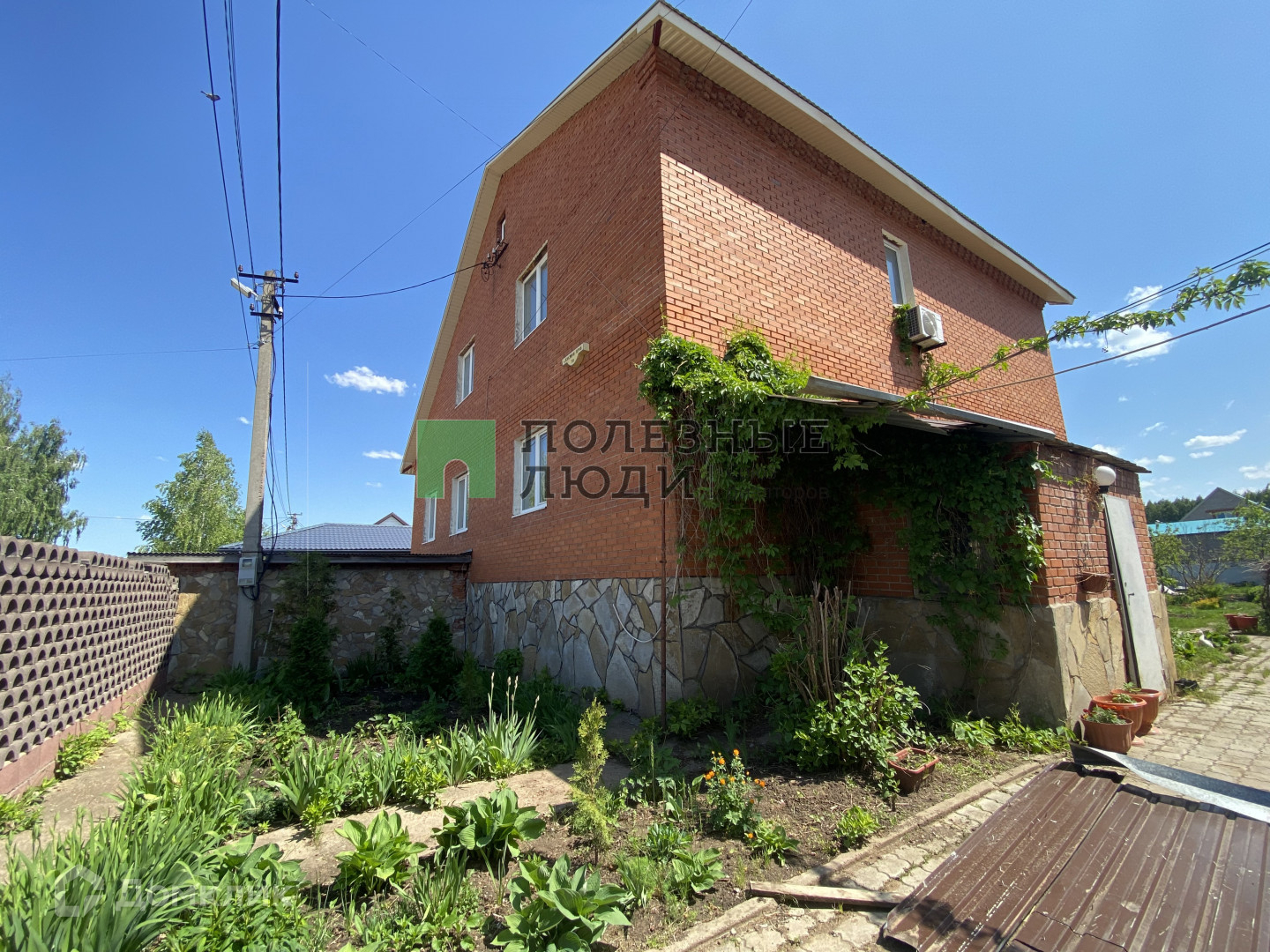 Земельный участок украшен пышной зеленью, плодородными растениями и фруктовыми деревьями. Также на территории имеется баня и сарай для для птиц, а также на цокольном этаже имеется обогреваемый гараж на 3 внедорожника и отдельный большой гараж с подъемником для ремонта автомобилей. В гаражах установлены автоматические ворота.