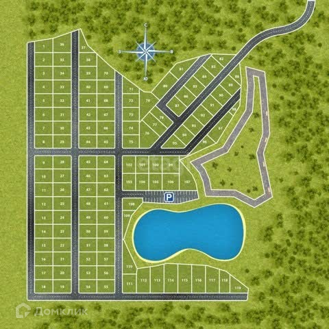 В поселке 119 участков от 12 соток и выше.