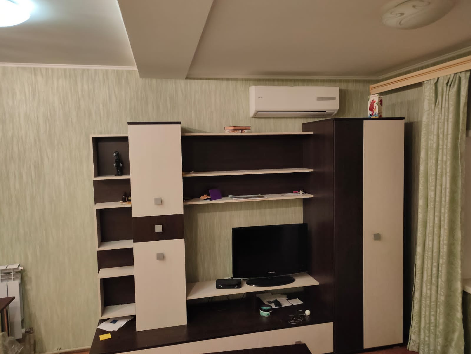 - стены выровнены, наклеены обои,
