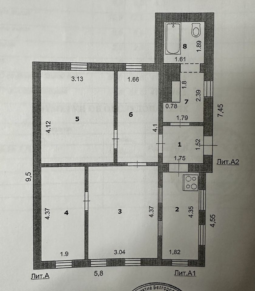 Общая площадь 52.4 м2