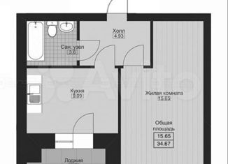 Общая площадь: 34 м2