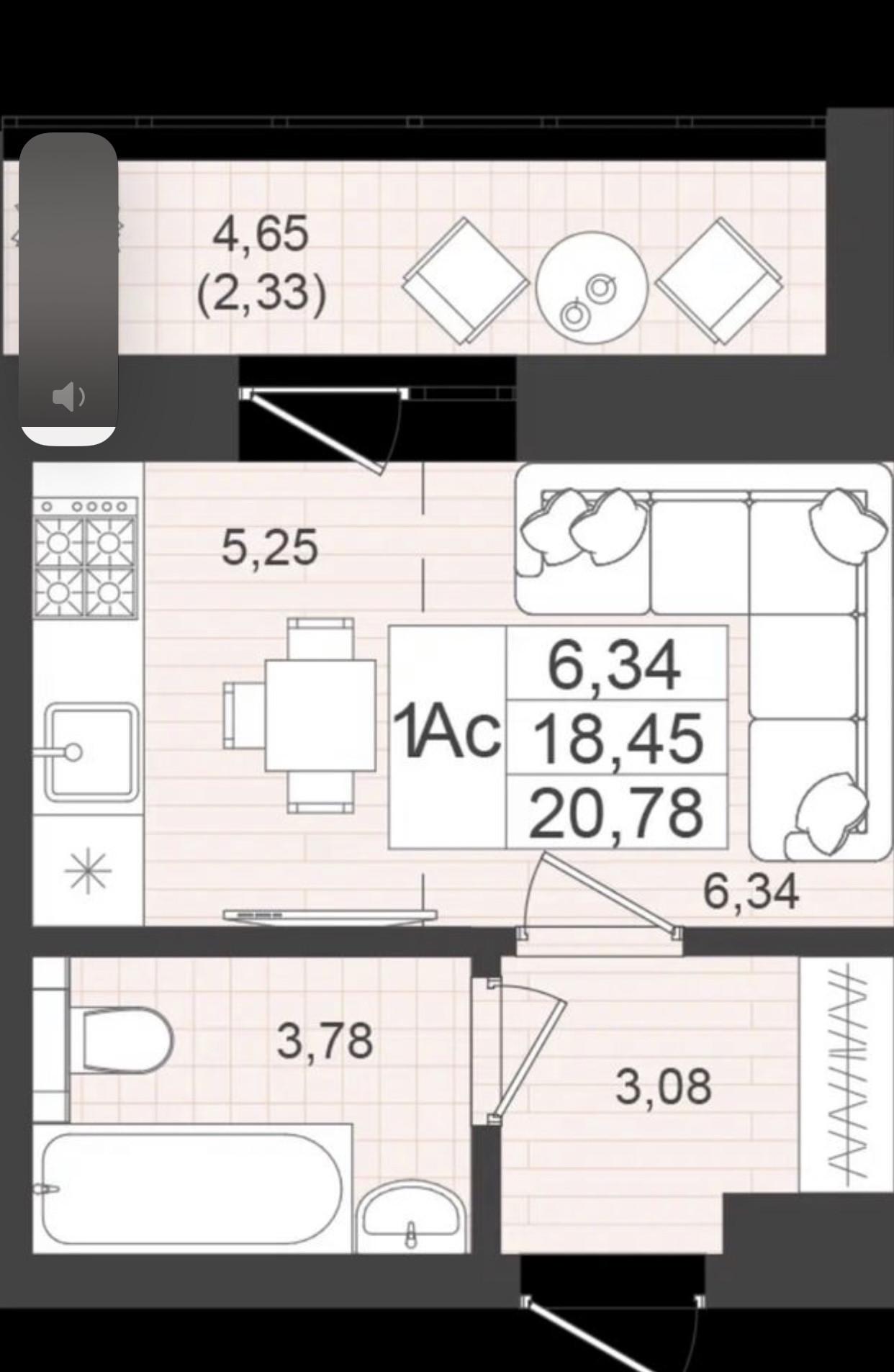 Общая площадь 23 м2