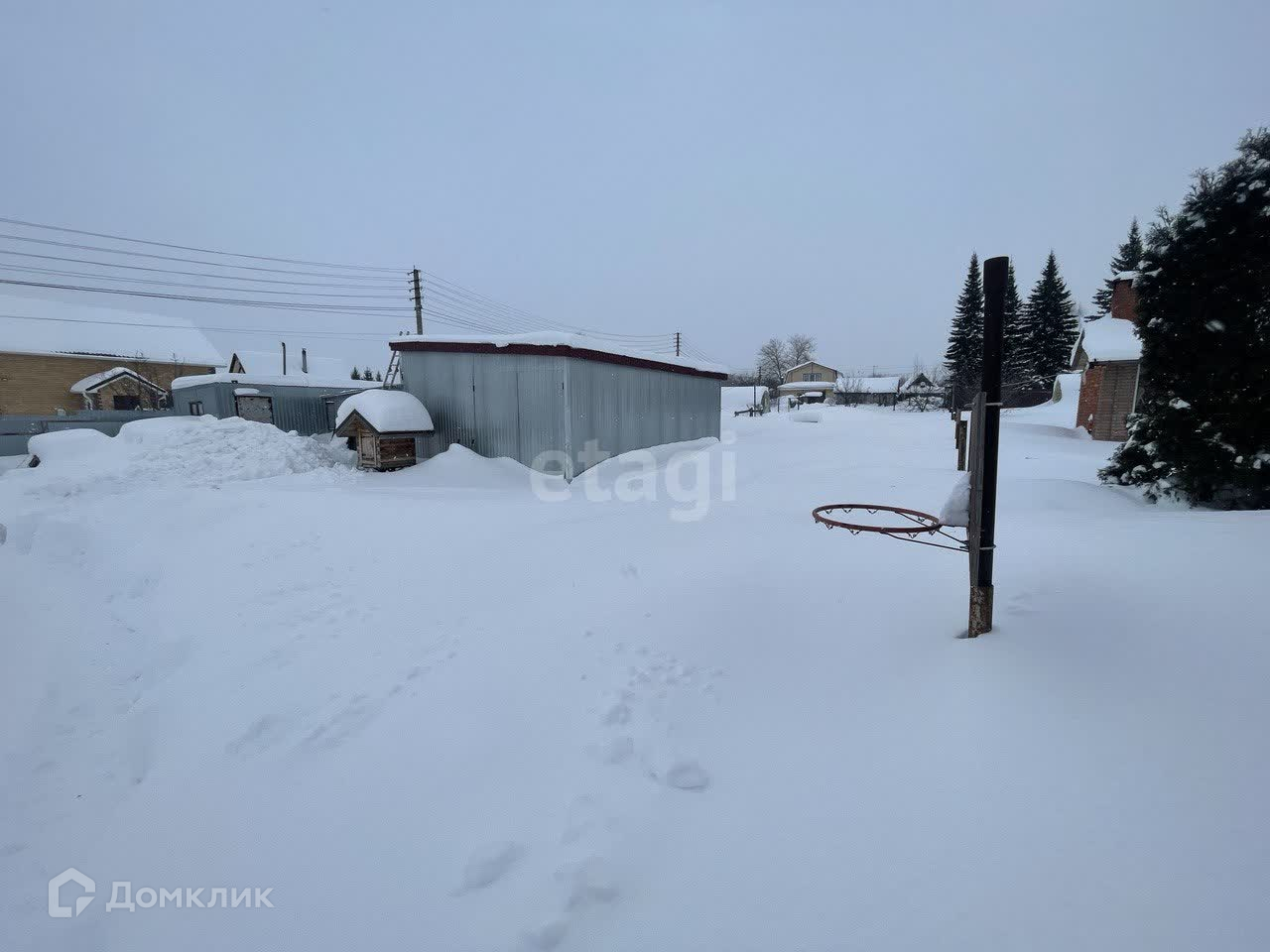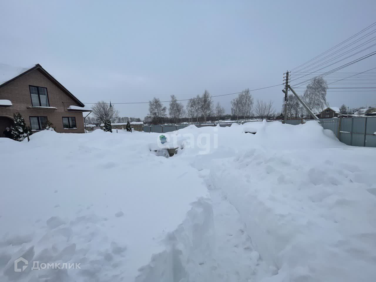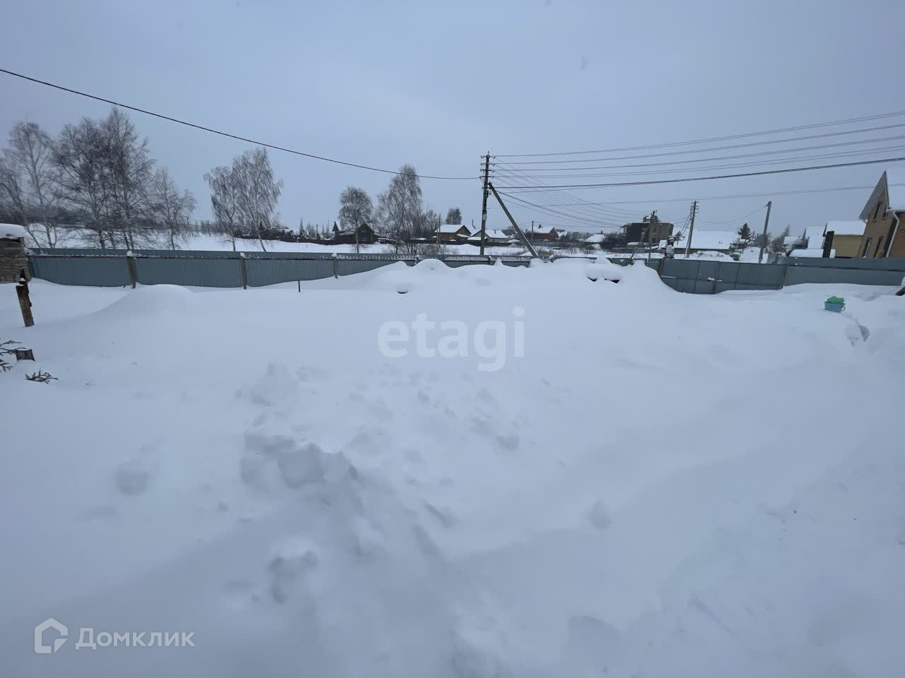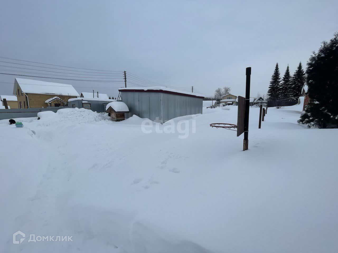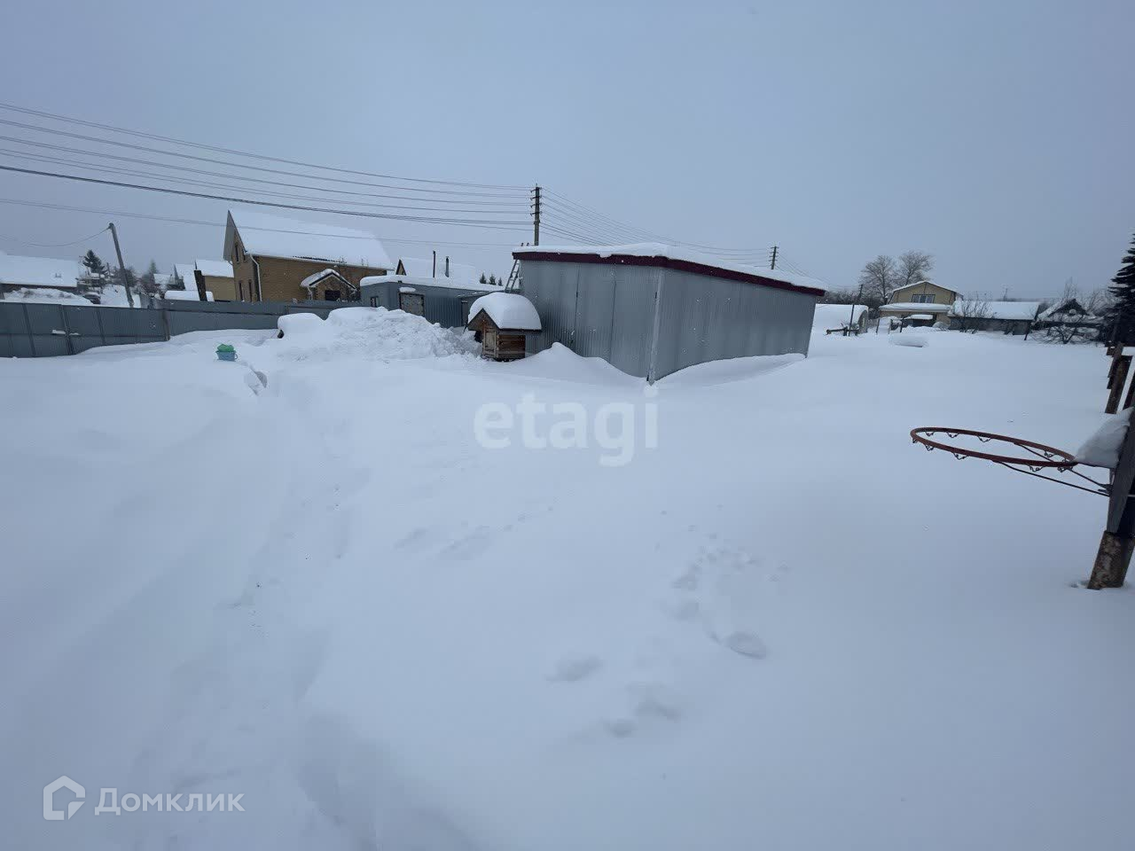 Участок огорожен забором из профнастила, также на участке построен теплый склад на 80 кв.м и сарай.