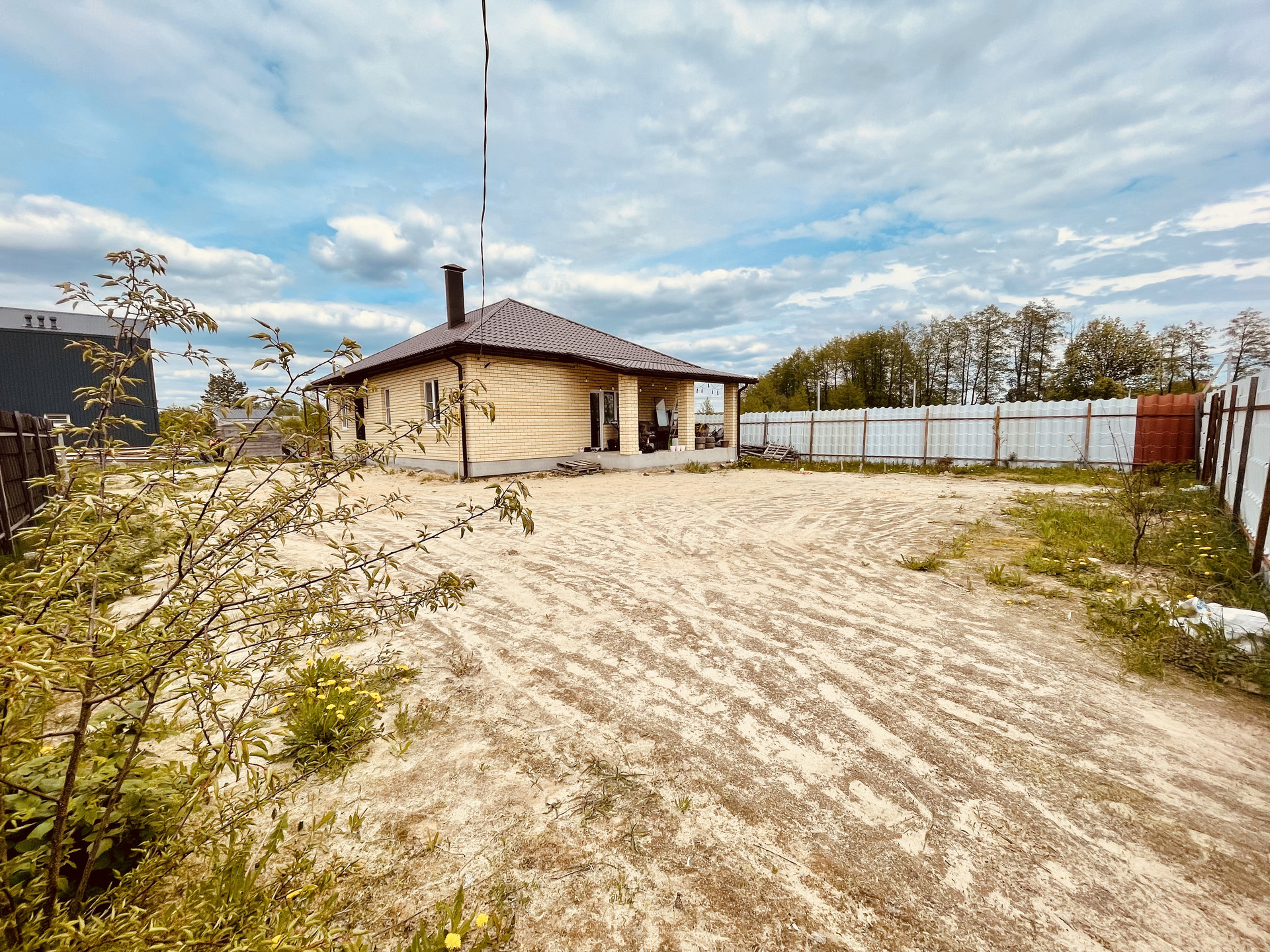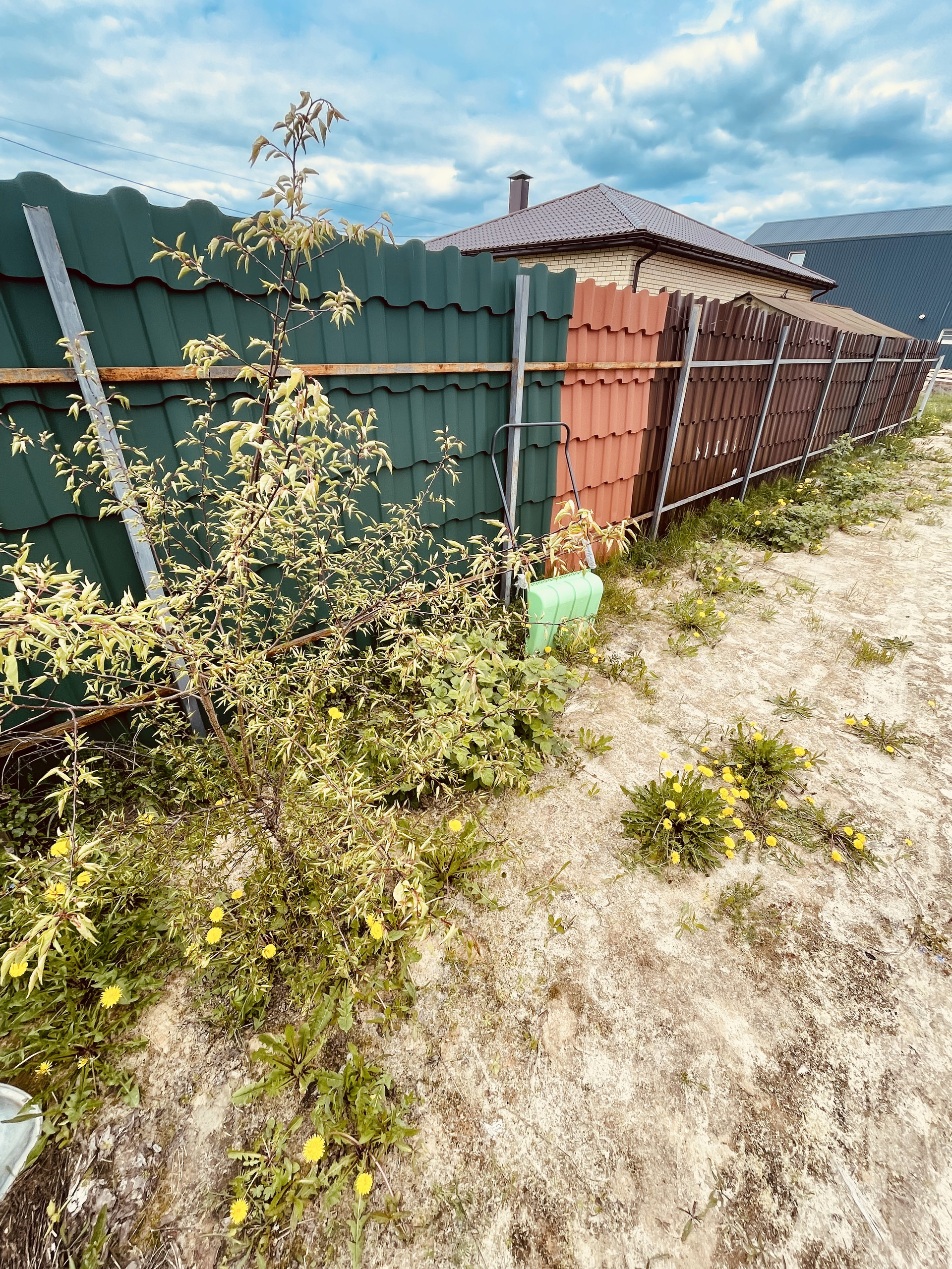 К дому насыпана дорога из битого кирпича. Хорошие соседи.