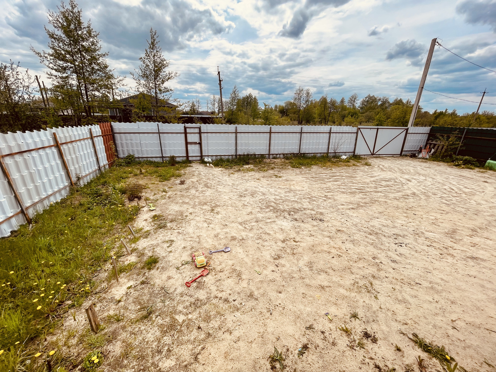 Участок поднят за счет песочной насыпи по всему участку. Земля плодородная, по участку есть плодовый деревья (персик, абрикос, малина, клубника). За участком поляны земляники.