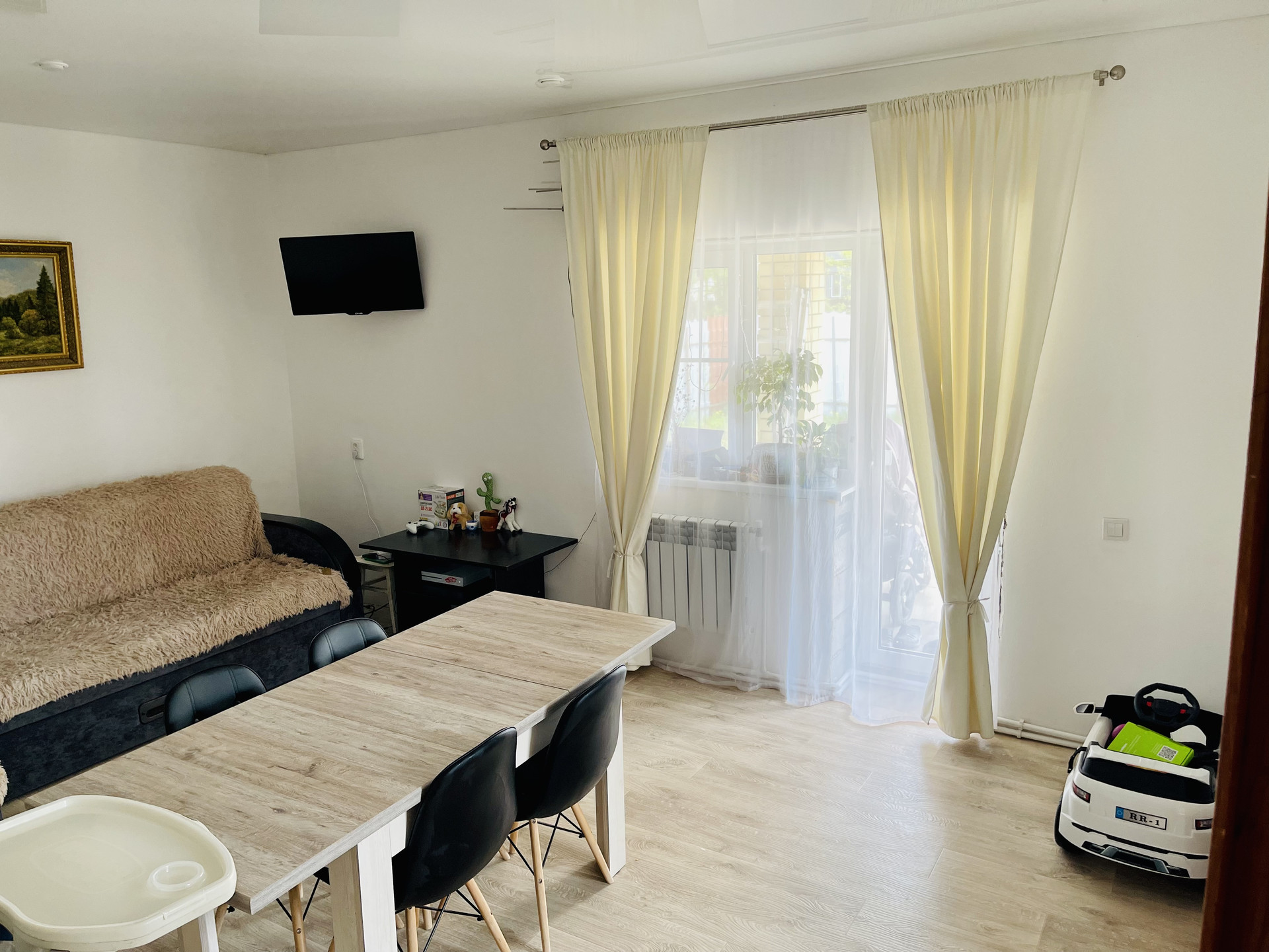 Дом продается частично мебелирован и обустроен техникой (холодильник, духовой шкаф, встроенная газовая комфорка, посудомоечная машина, стиральная машина, кондиционер, шкафы для одежды, обеденный стол+ 4стула, камеры по периметру дома+ монитор с регистратором)