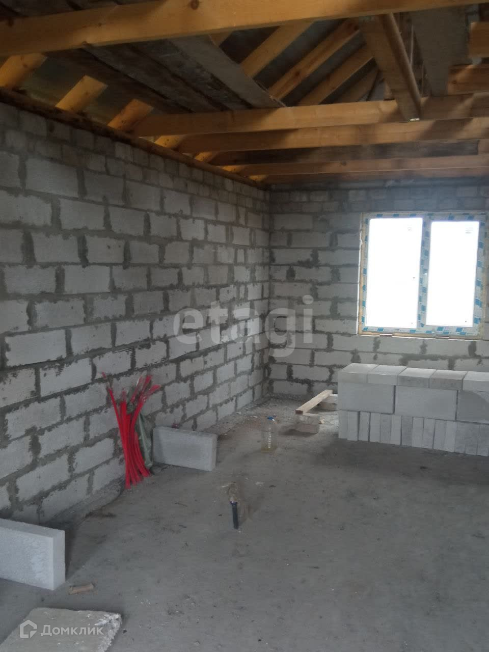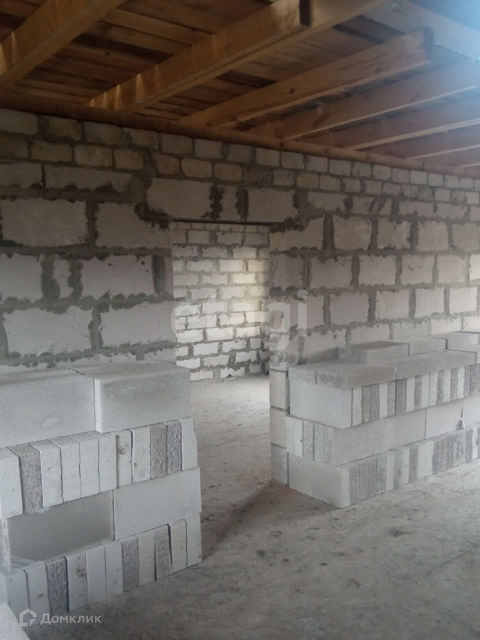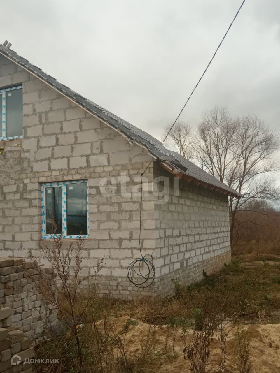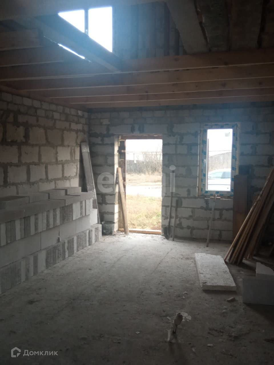 Продается дом, который находиться на тихой улице, рядом продуктовый магазин и остановка общественного транспорта. Участок ровной формы размером 20 на 30 метров, на участке электрический столб со счетчиком, рядом проходит газ, фундамент ленточный, глубина 130 см шириной 30 см. Стены дома из газосиликатного блока размером 30*25*60см, крыша дома - металлочерепица, стропильная система из бруса 150*50*6000, на первом этаже доме совмещенный санузел, кухня и гостиная комната. На мансардном этаже 2 спальни, дом в стадии строительства сдача в декабре 2023г