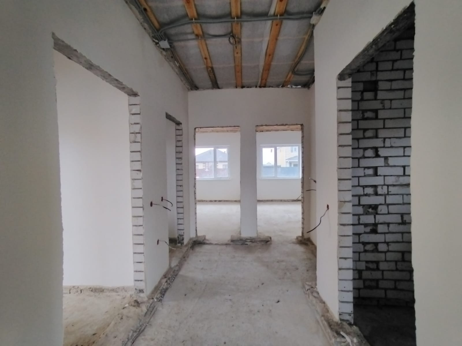В доме установлены качественные металлопластиковые окна. По пожеланию и чертежу покупателя будет разведена система отопления с ТЕПЛЫМ ПОЛОМ и установлены радиаторы, ВКЮЧЕНО В СТОИМОСТЬ. Заведены и подключены все коммуникации. Качественная продуманная электрика. .Полусухая стяжка пола, стены оштукатурены под обои.