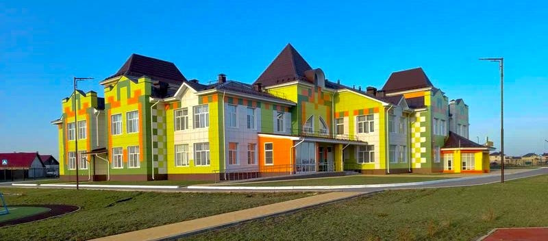 Развивающийся микрорайон с детским садиком, в школу возит детей автобус, магазины.
