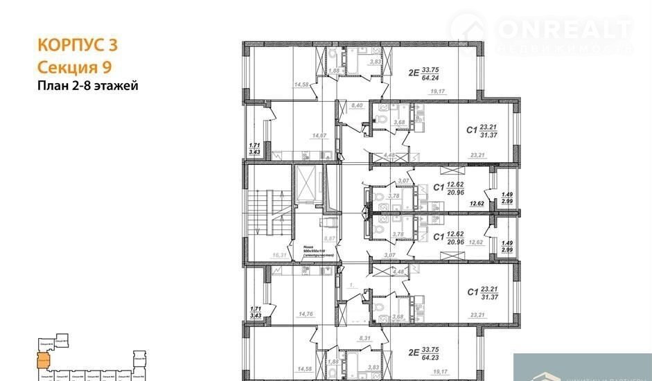 Квартира студия, 21 м2, этаж 7 / 8, на продажу в селе Новая Усмань