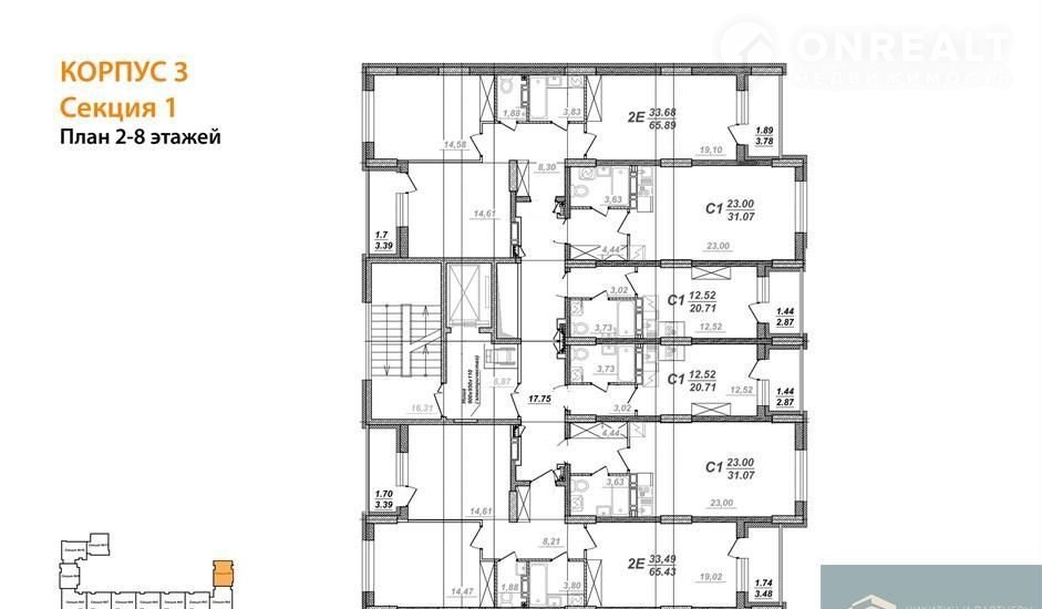 Квартира студия, 20.7 м2, этаж 7 / 8, на продажу в селе Новая Усмань