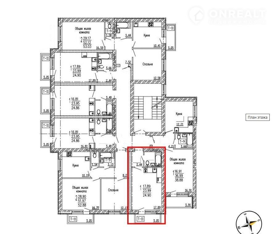 Общая площадь 24.9 м2
