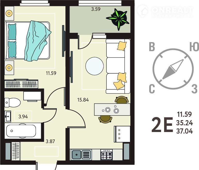 Общая площадь 37 м2