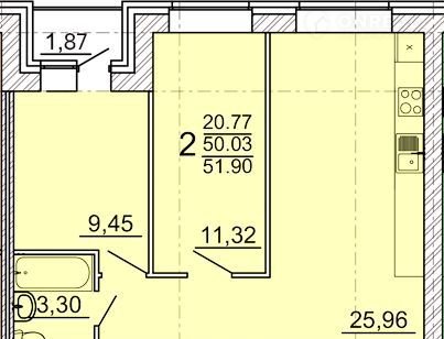 Общая площадь 51.1 м2
