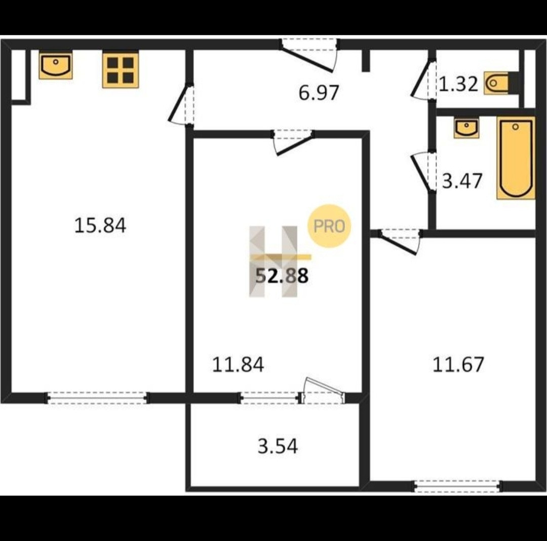 Общая площадь 52.88 м2